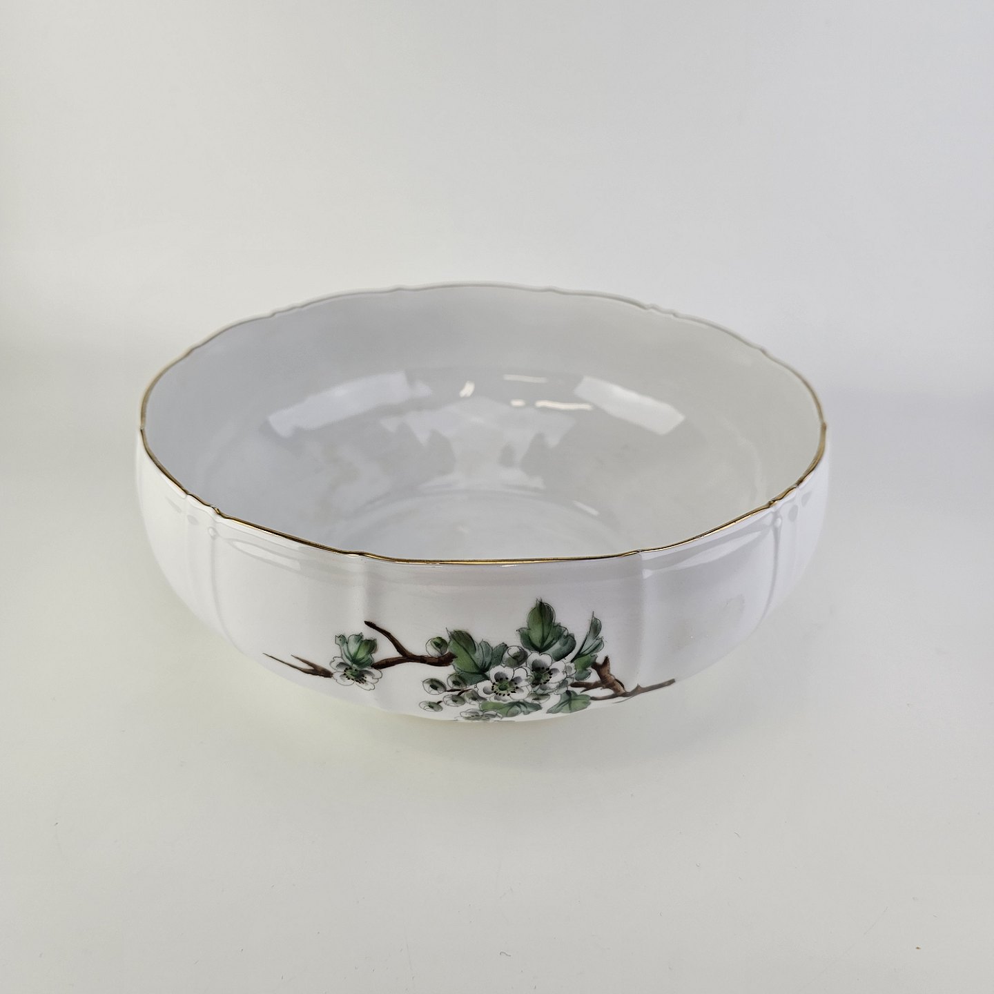 Eremitage er porcelæn dekoreret med hvidtjørn og guldkant