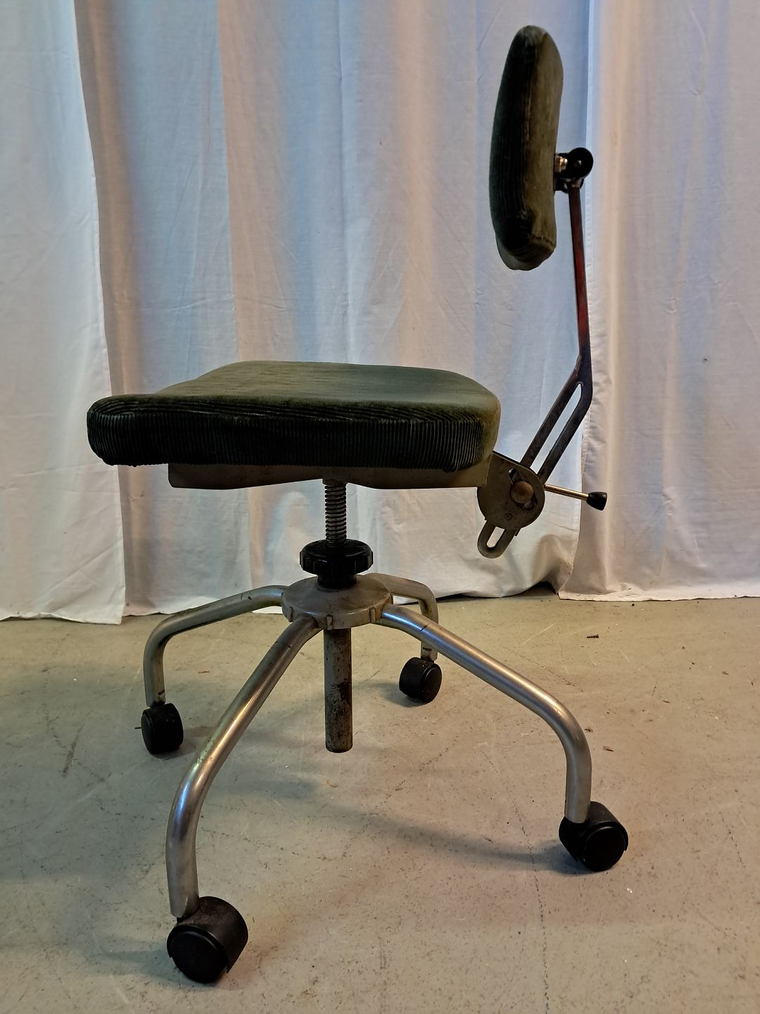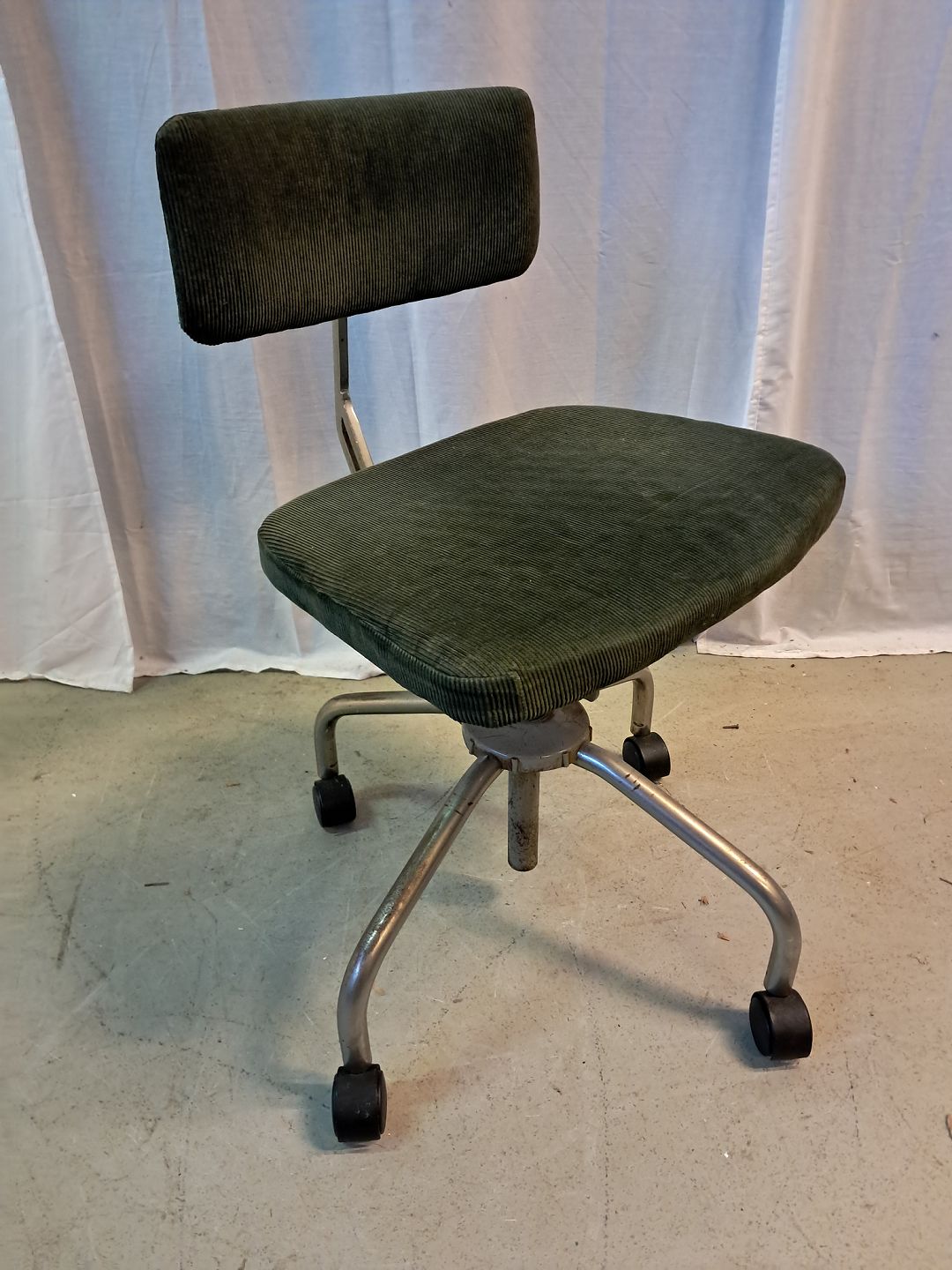 Kontorstol i metal med velourbetræk, fra 1960erne.