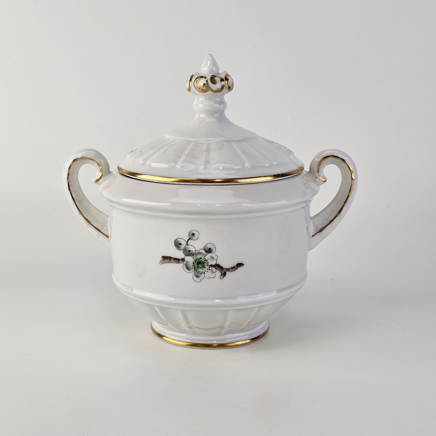Eremitage er porcelæn dekoreret med hvidtjørn og guldkant