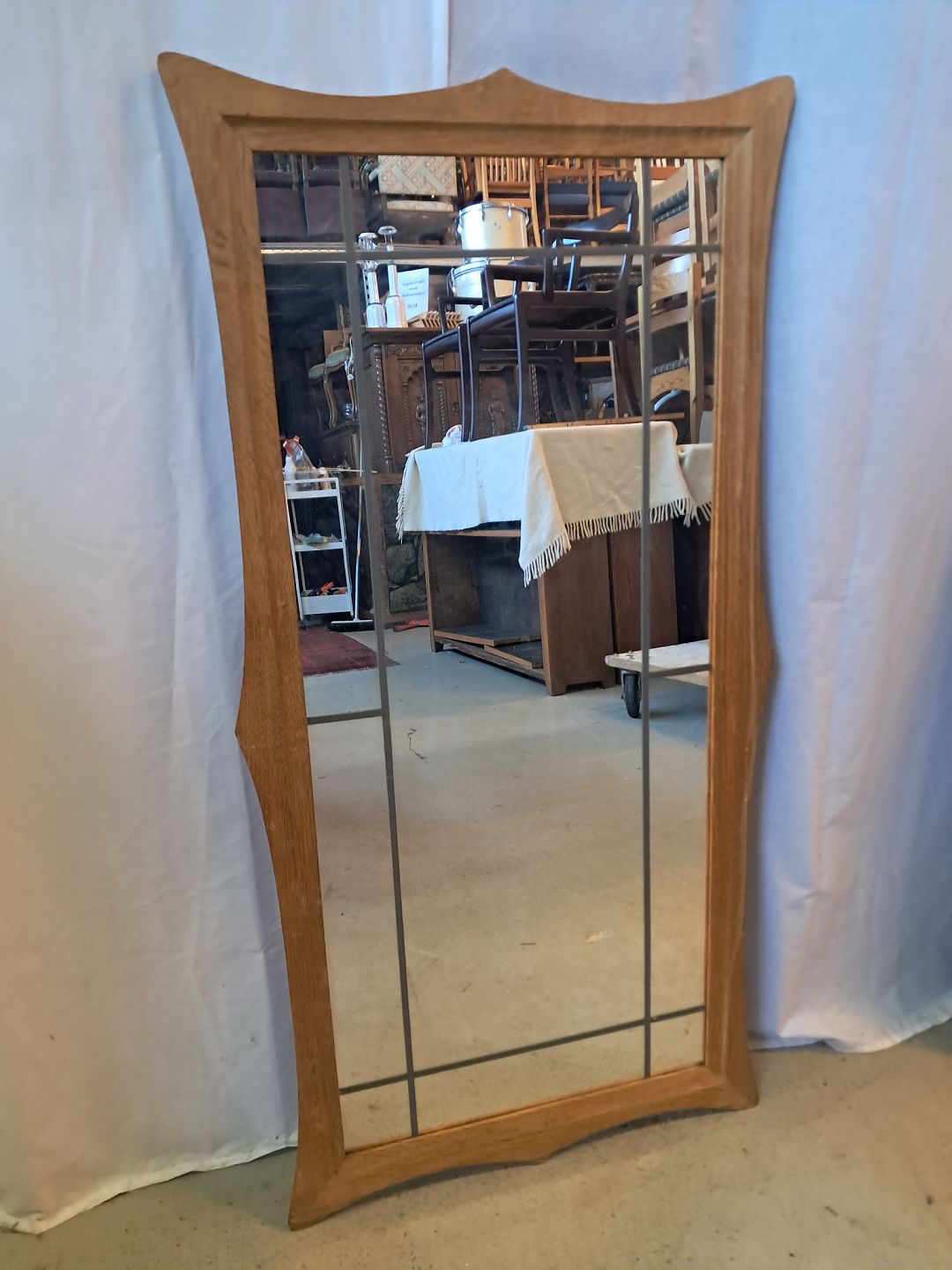 Spejl i massivt egetræ, fra 1980erne.