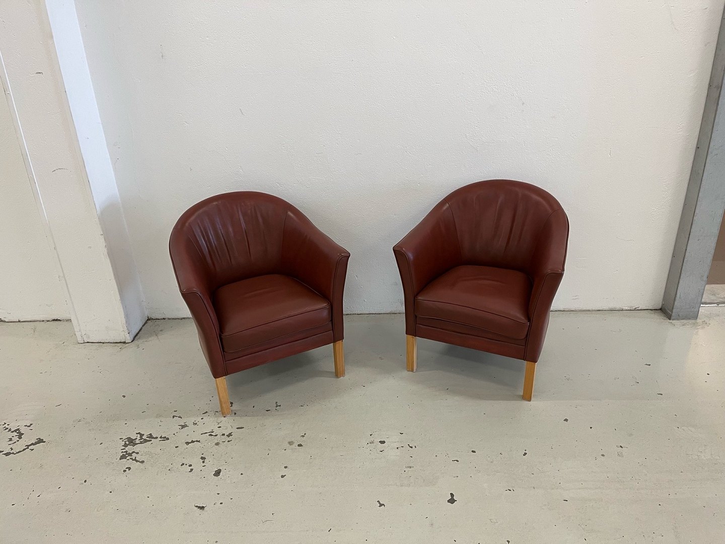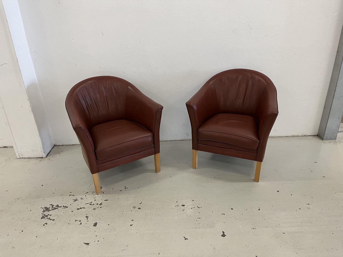 Mogens Hansen MH80 2 lænestole i light Brown læder og med ben i lys bøg.