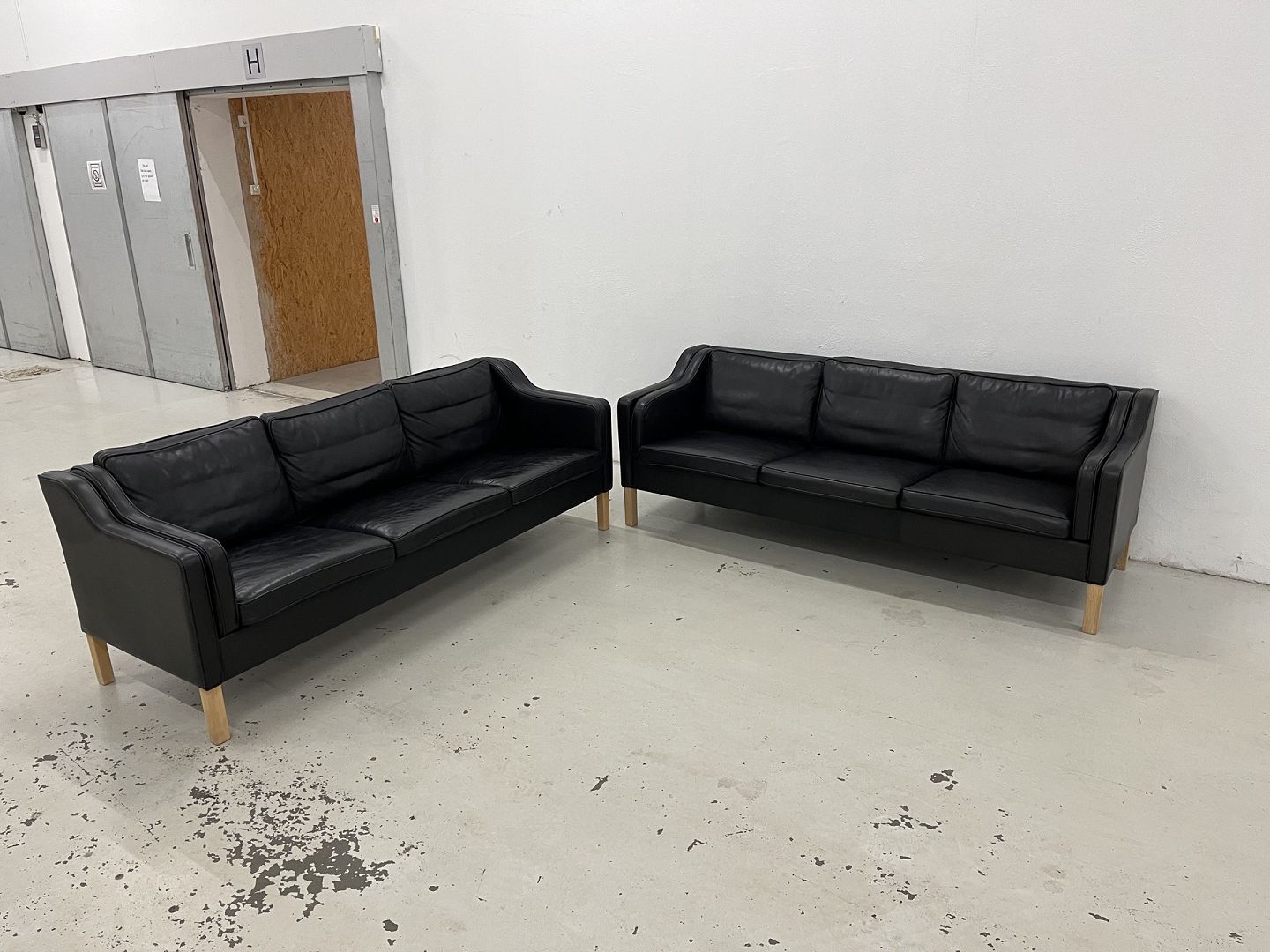 Mogens Hansen MH195 2×3 Pers. Sofagruppe i sort Premium læder og med ben i lys Eg.