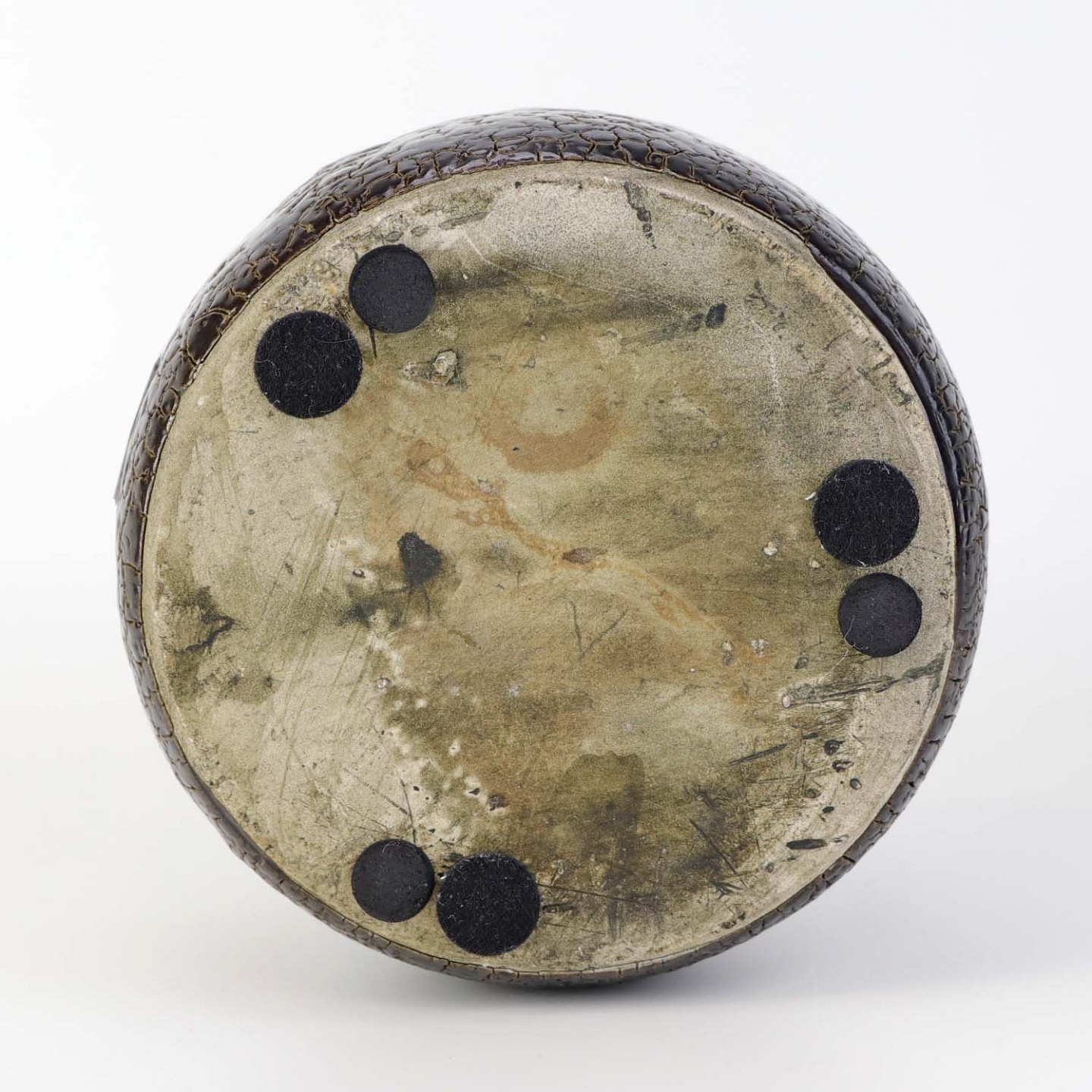 Skjuler til urtepotte i glaseret keramik med krakkeleret mønster i grønbrune farver.