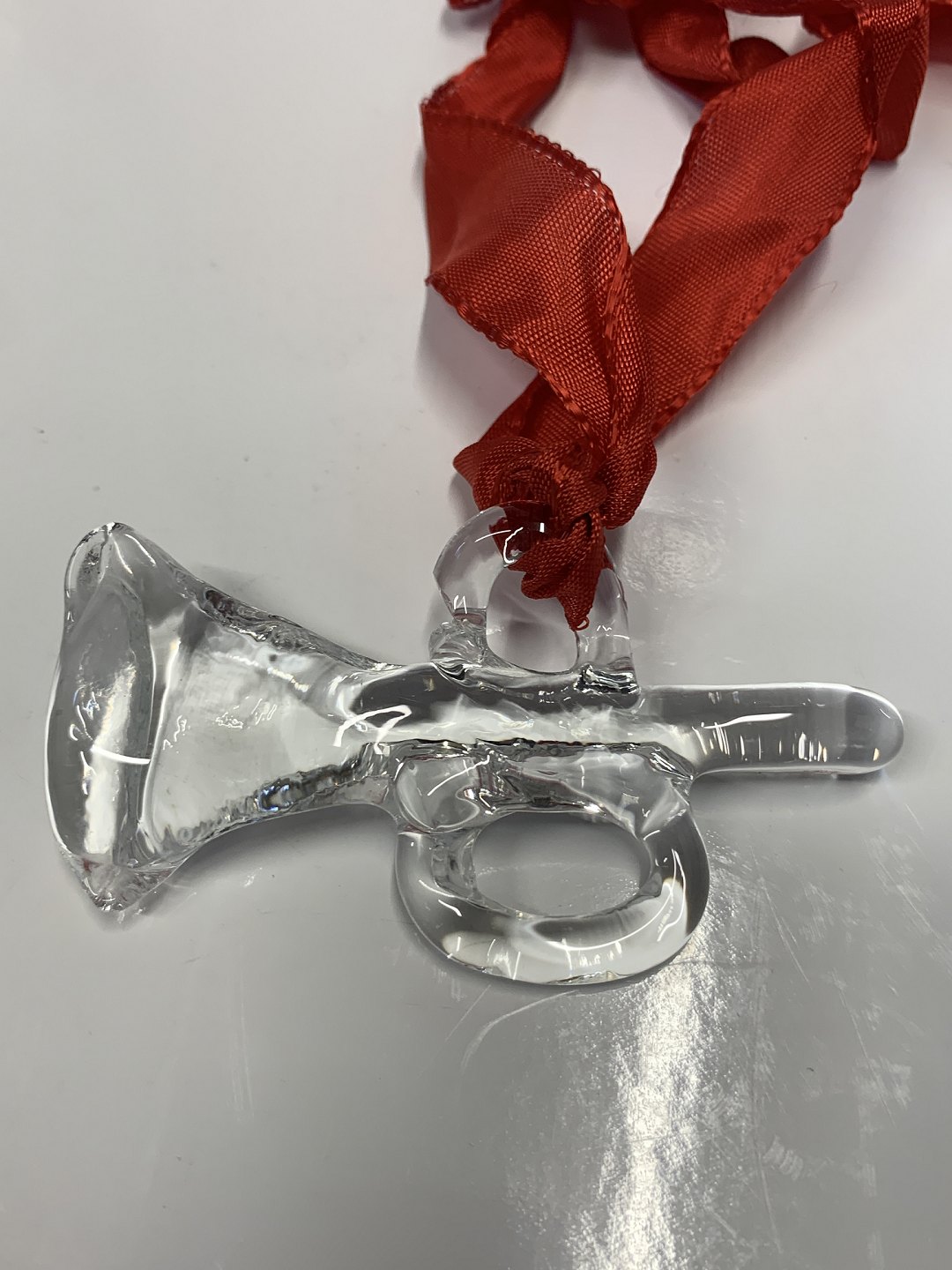 Super nice Christmas hanging glass, designed by Bertil Vallien for Kosta Boda. Hang the sweet trumpet on the Christmas tree, a branch, in the window or down from the ceiling. It appears in beautiful and complete condition.