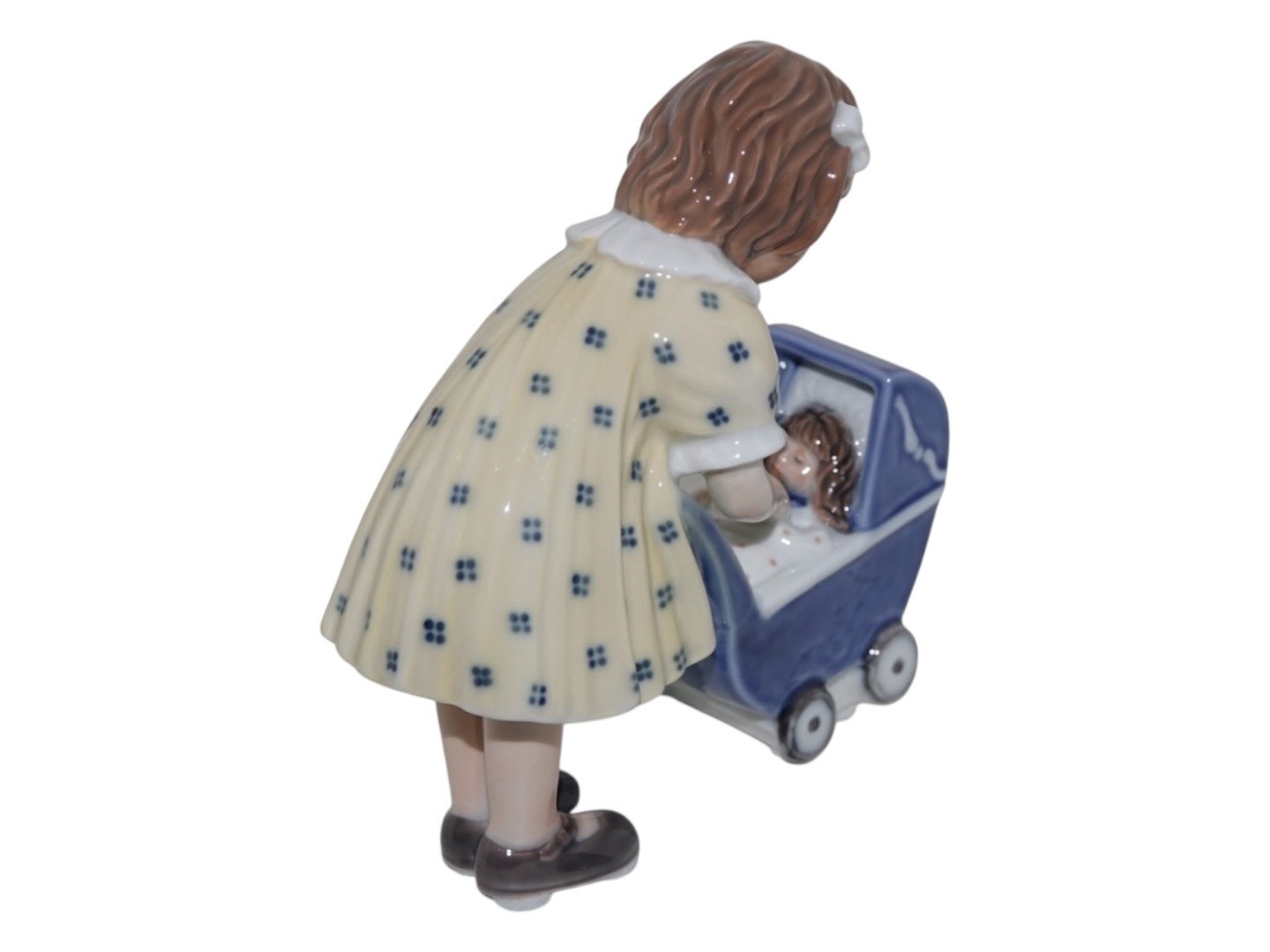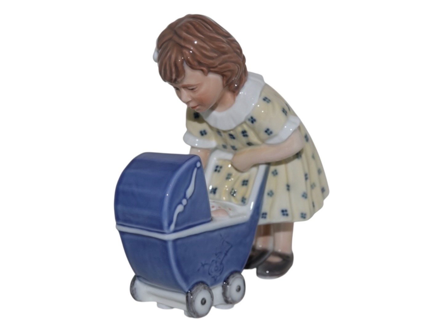 Royal Copenhagen figurine, girl with blue baby carriage.