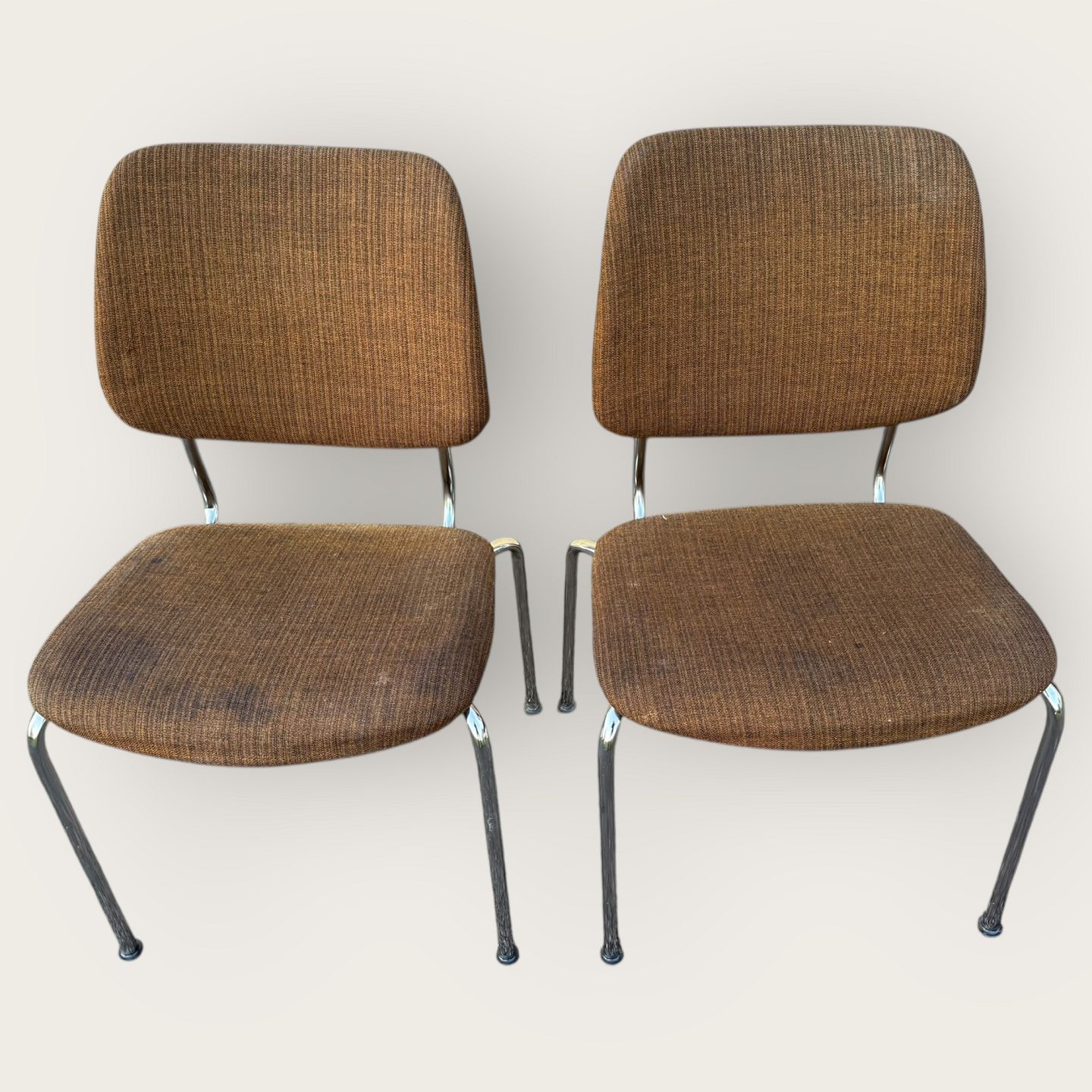 Two chairs with metal frames and fabric upholstery, from the 1950s-1970s, Frames in fine condition, upholstery with signs of wear.
