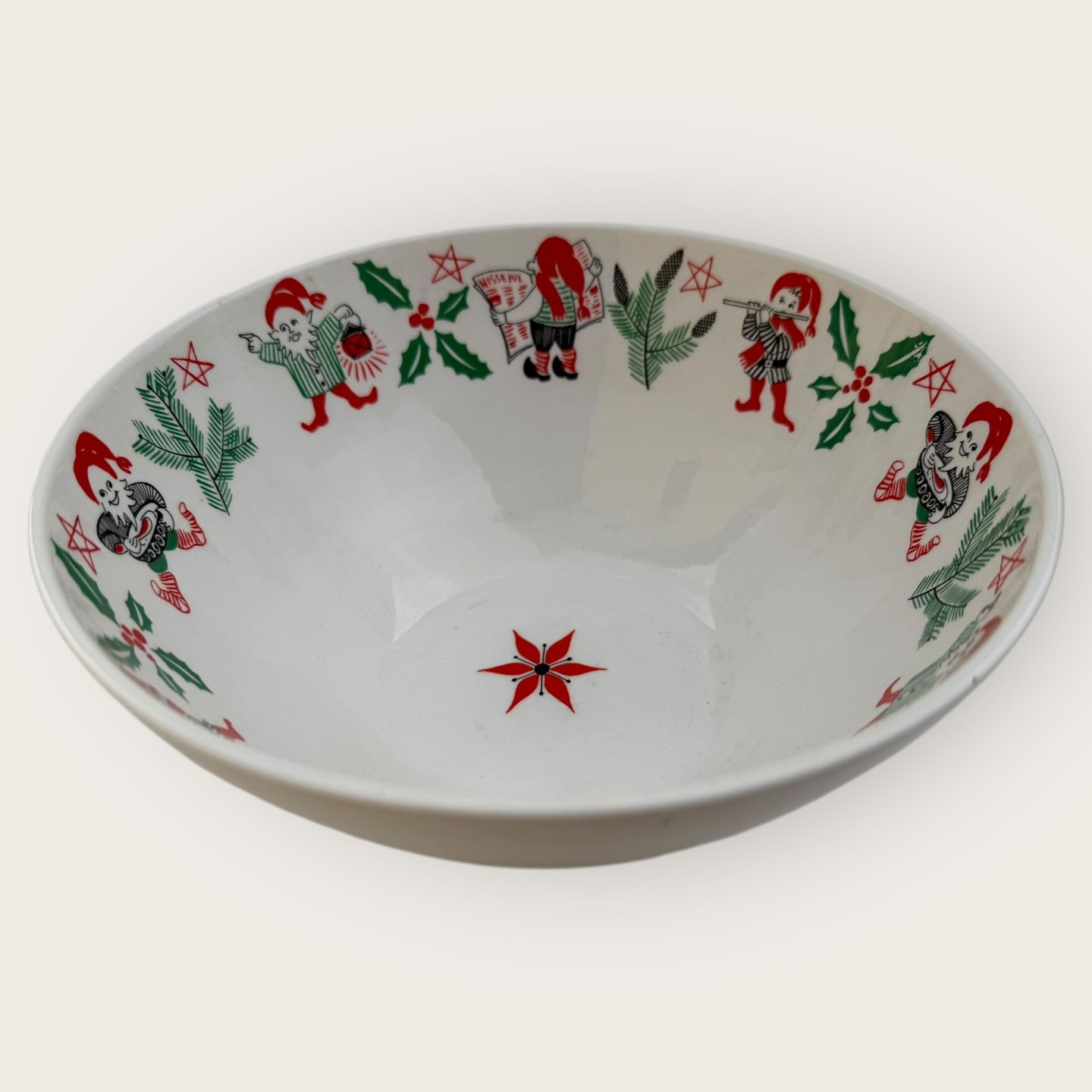 Stavanger Flint, Norge, Serverings skål med nisser, 21cm i diameter og 9,5cm høj *Lidt krakeleringer under glasuren ellers pæn stand*