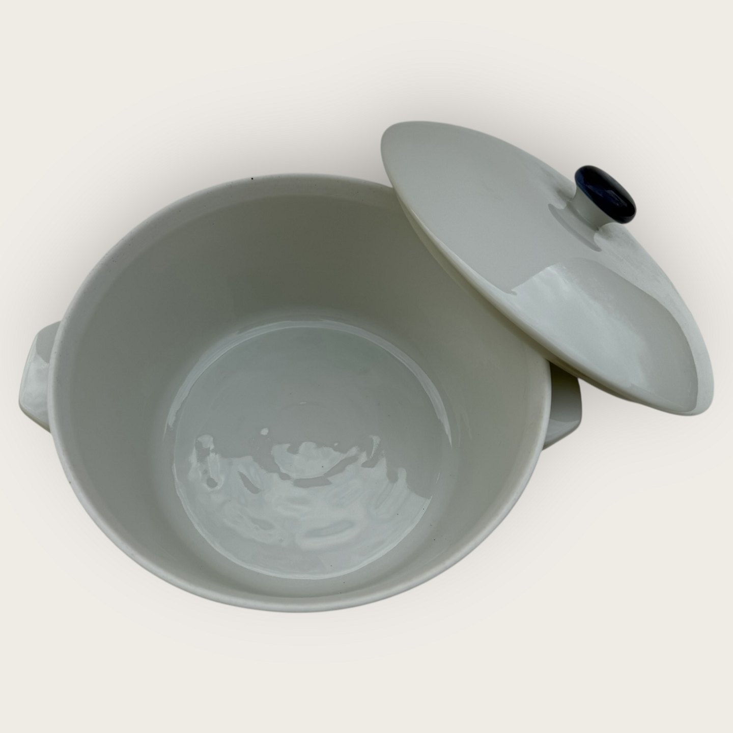 Lyngby, Danild 40, Blue flame, Pot with lid and handle, diameter 20.5cm, 25 cm wide with handle, 10.5cm high, 1st grade, Design Axel Brüel & Egon Mortensen *Good condition*