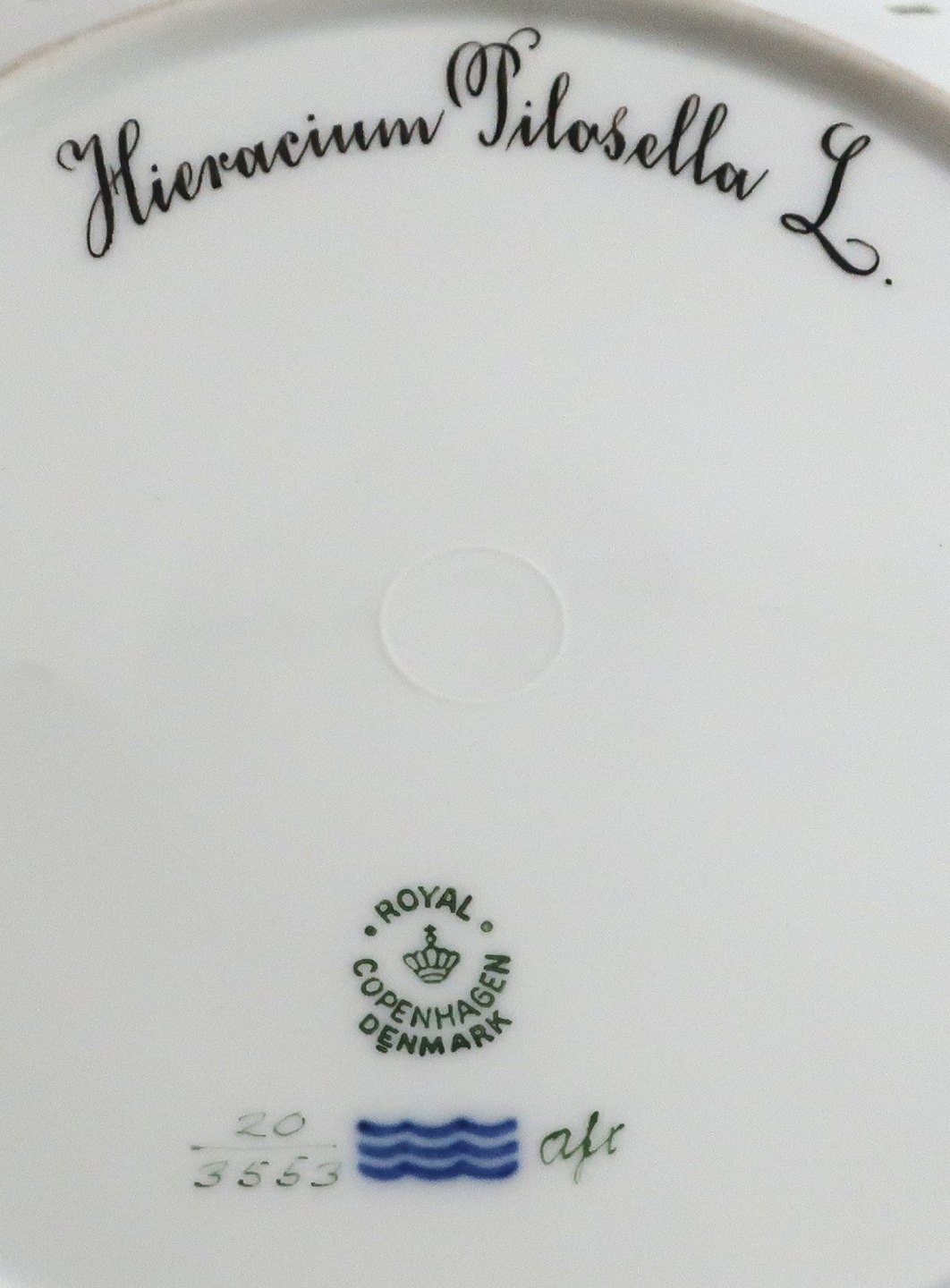 Royal Copenhagen. Flora Danica tallerken med gennemskåret bort. Diameter 25 cm. Model 3553. ( 1 sortering ). Hieracium pilosella L