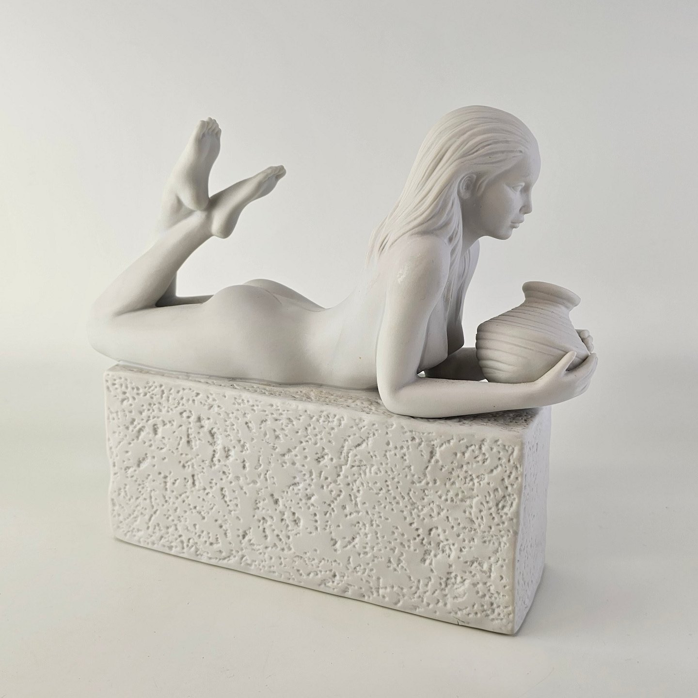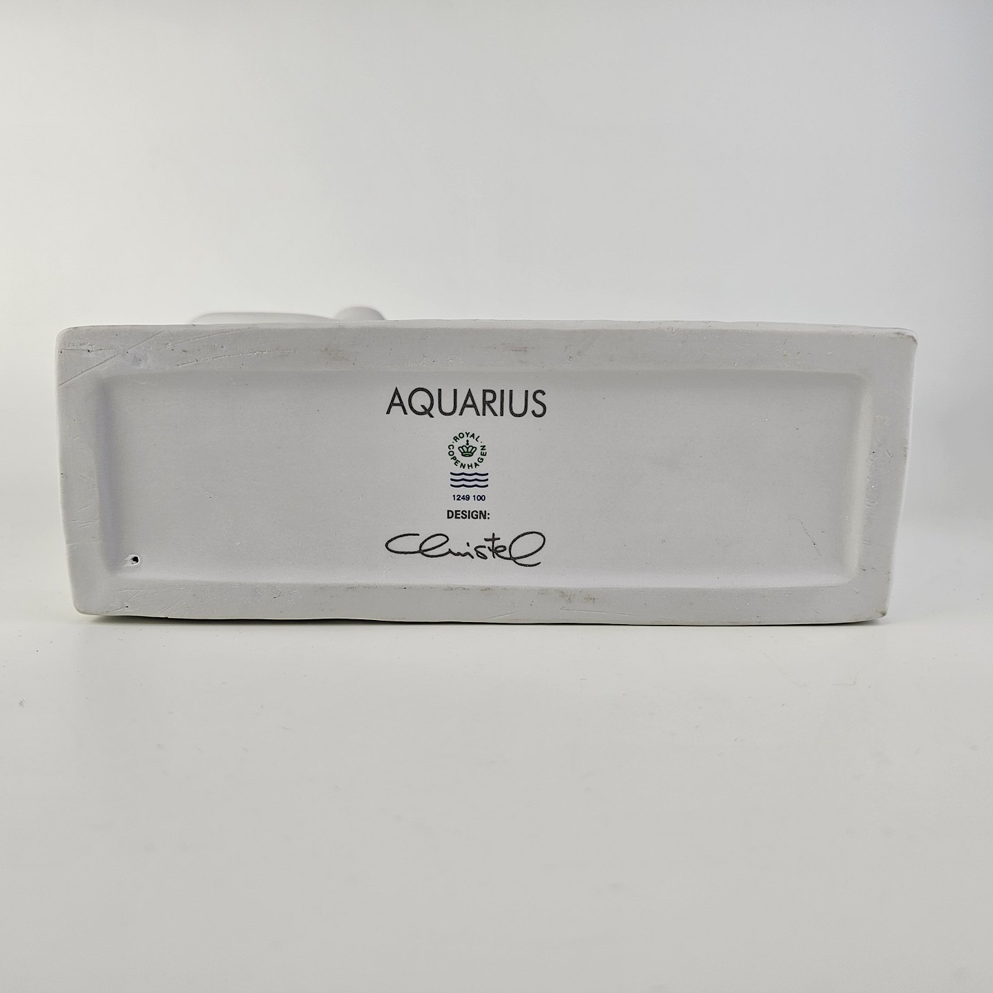 Figur i hvidt kongeligt porcelæn med motiv af stjernetegnet vandbæreren og titlen Aquarius
