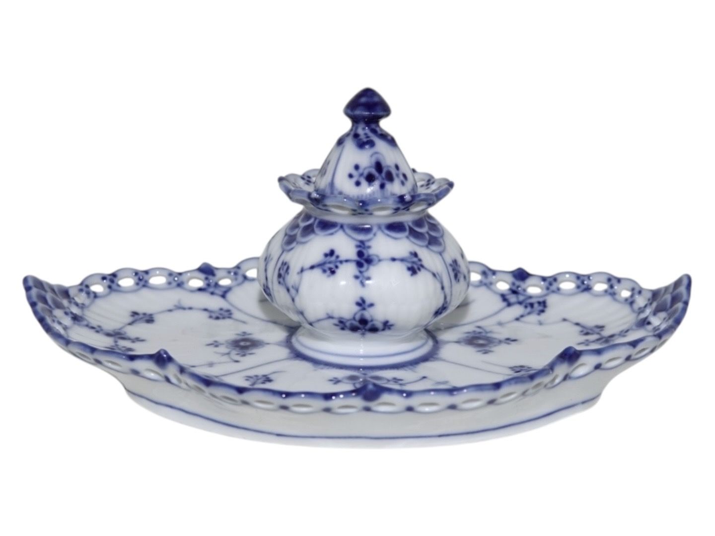 Royal Copenhagen Blue Fluted Full Lace, rare inkwell.