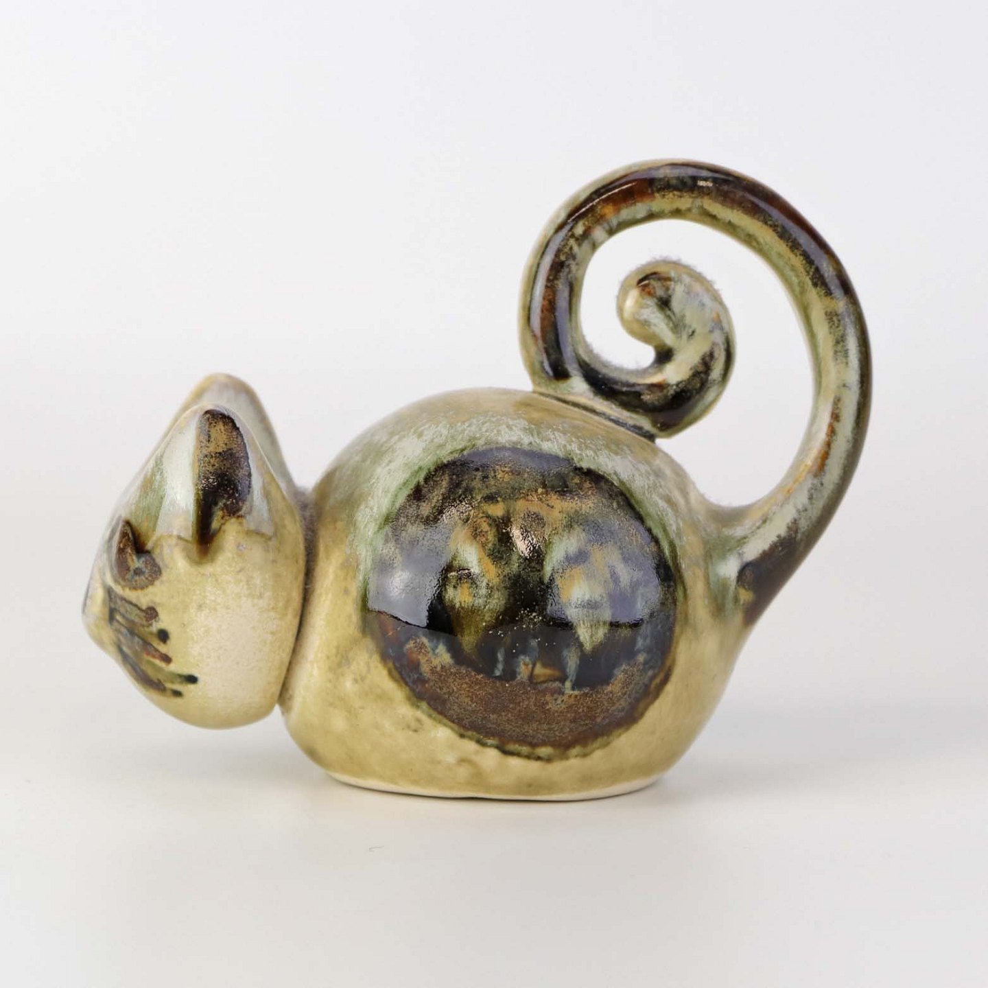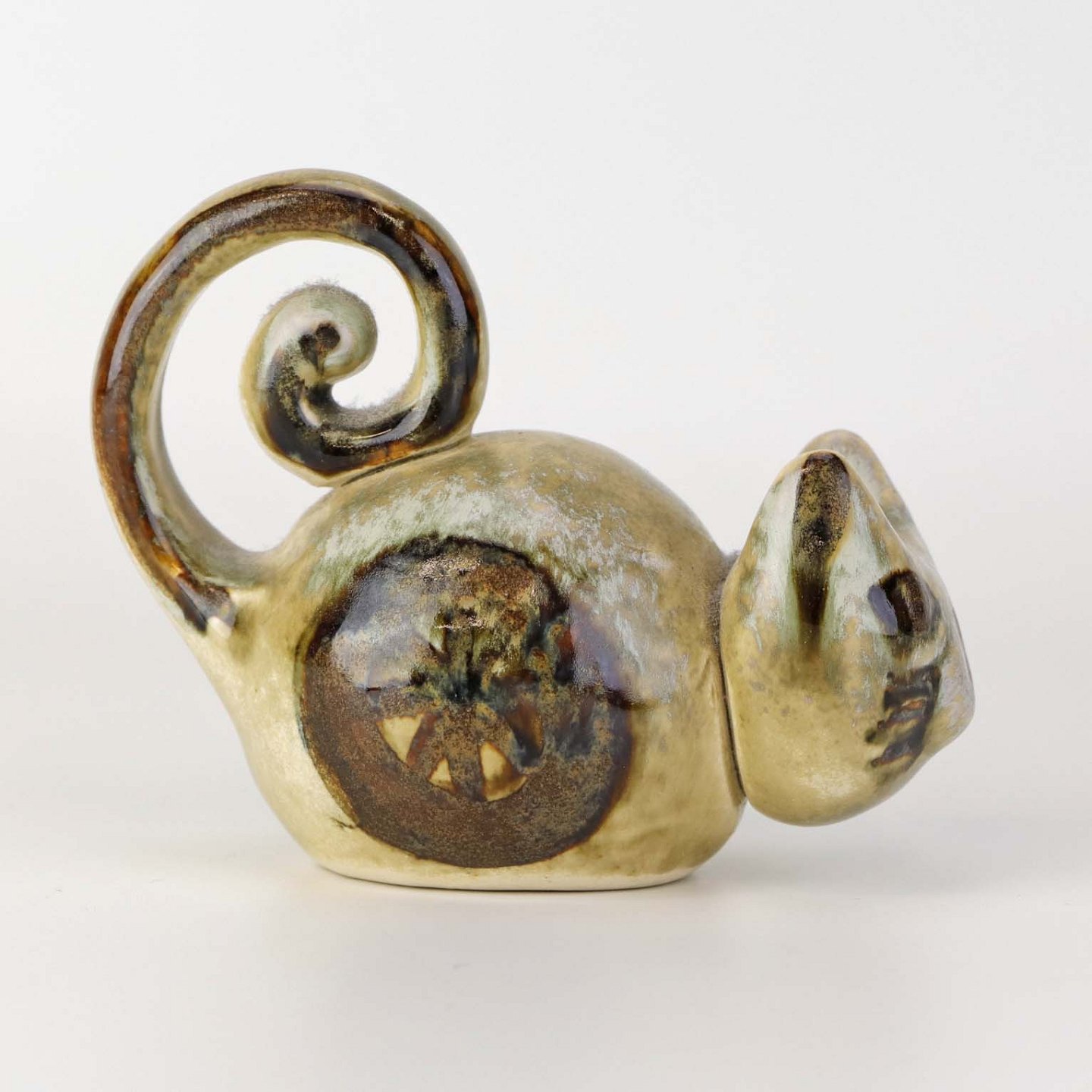 Figur i glaseret keramik med motiv af en mus