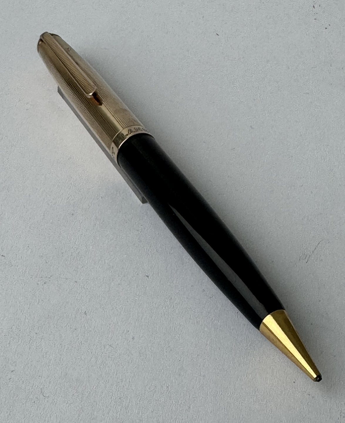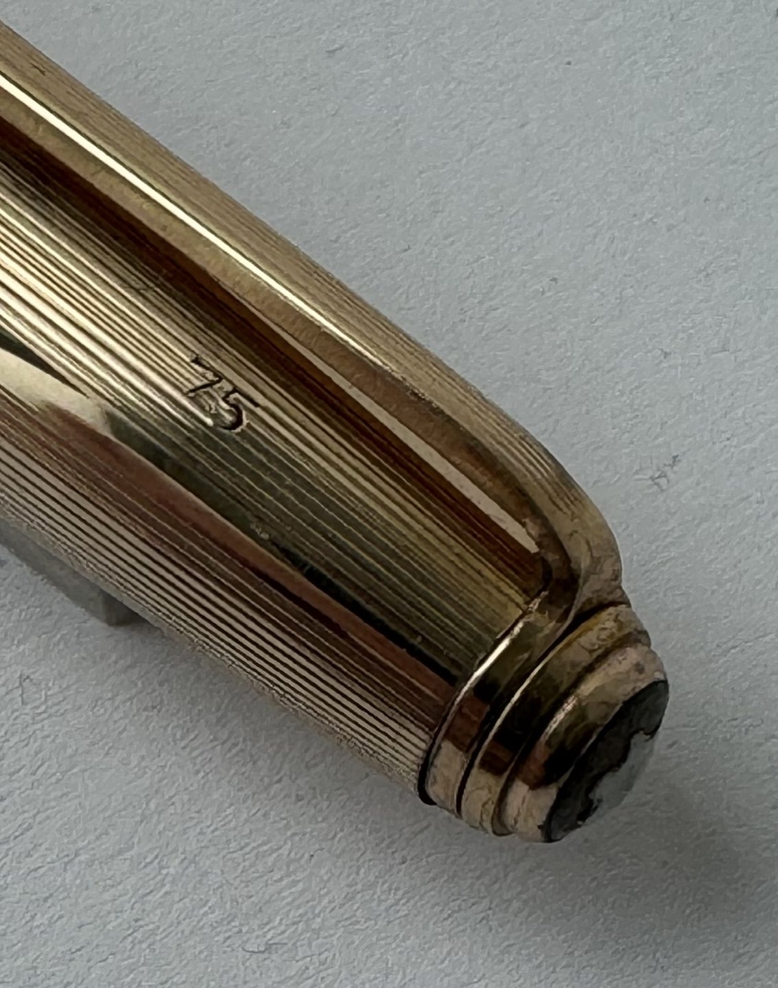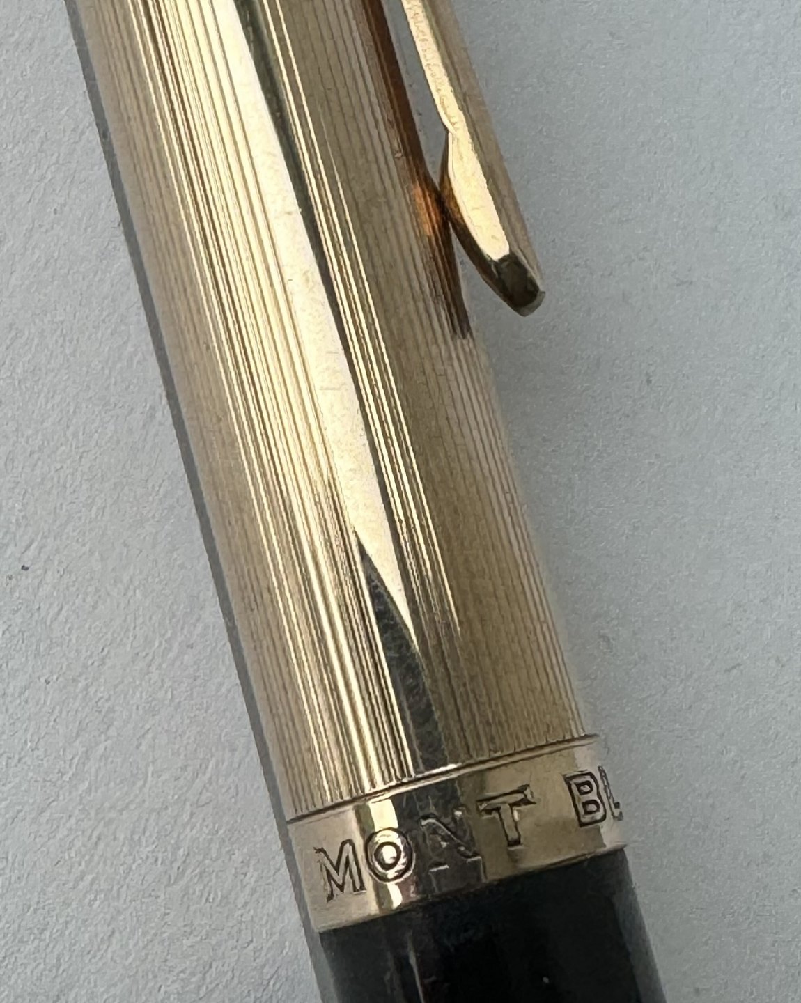 Black Montblanc pencil with gold double top. In very good condition. Ready to be used.L. 12,4 cm