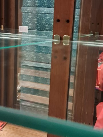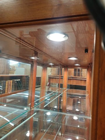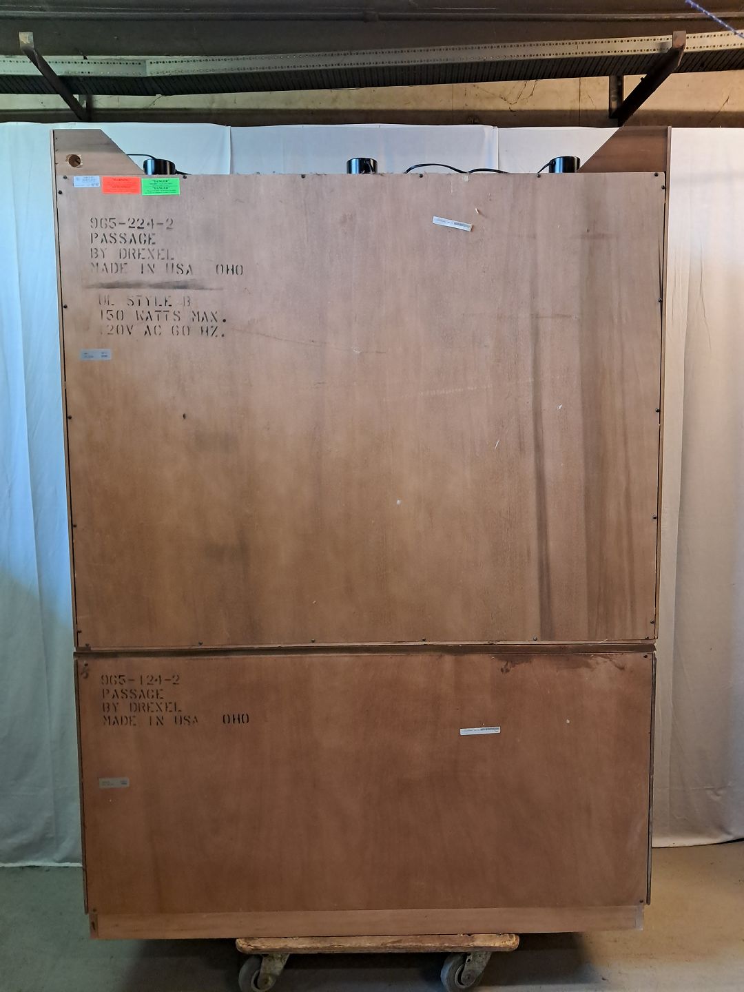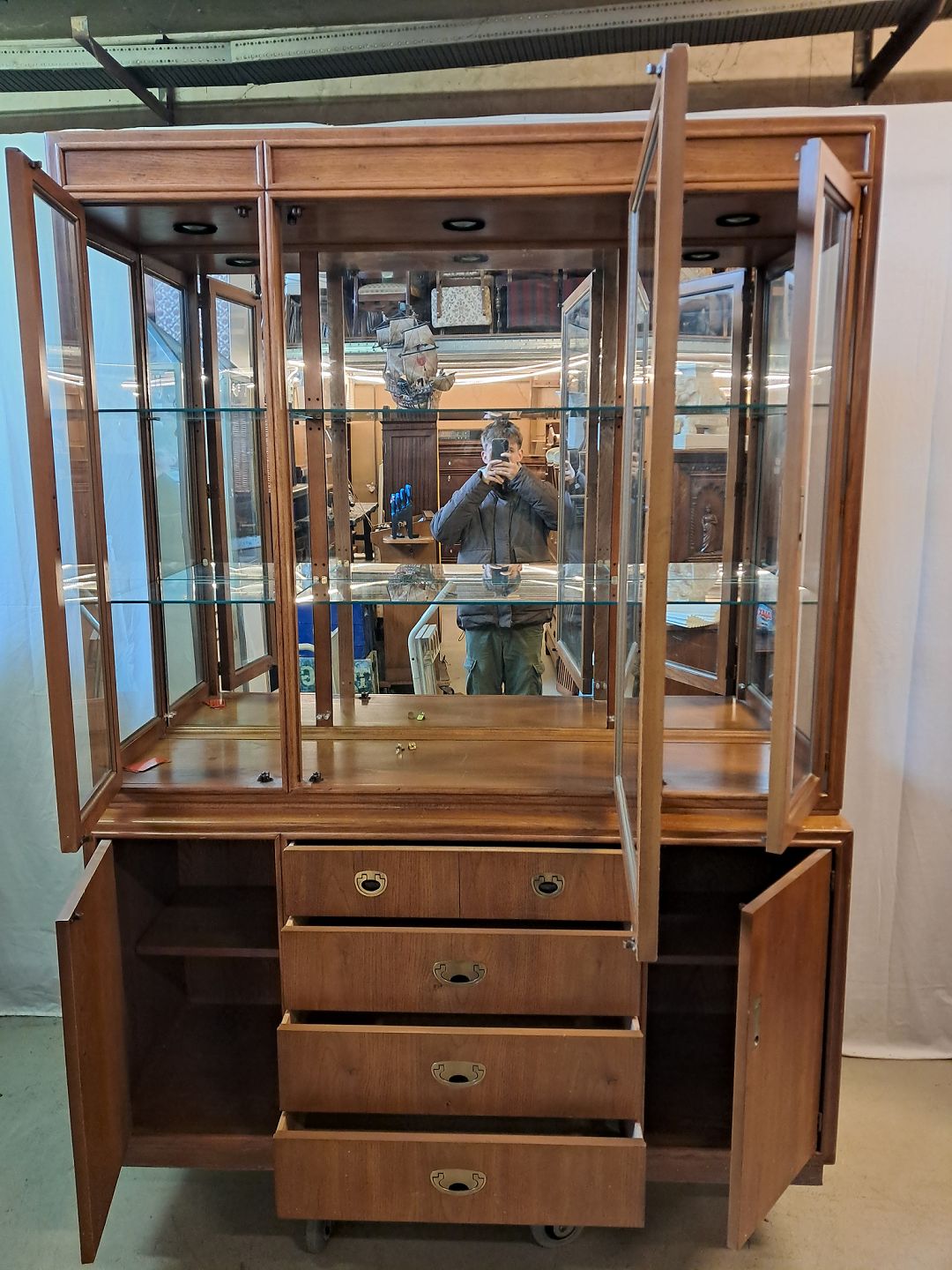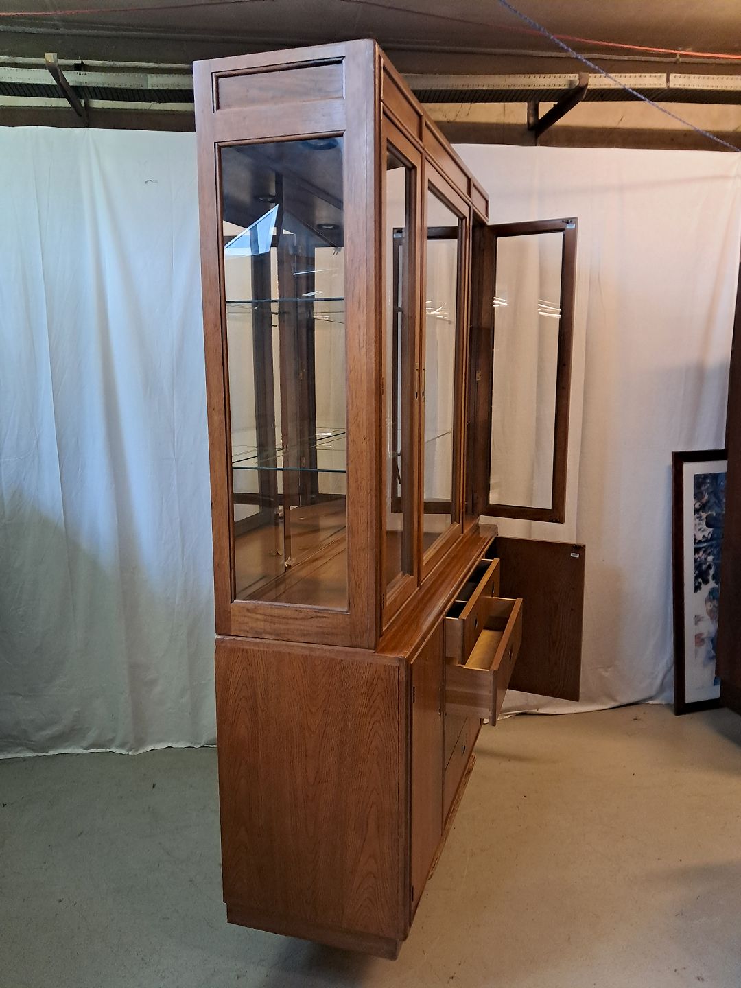 Amerikansk skab i fineret egetræ med glasoverdel, fra 1990erne.