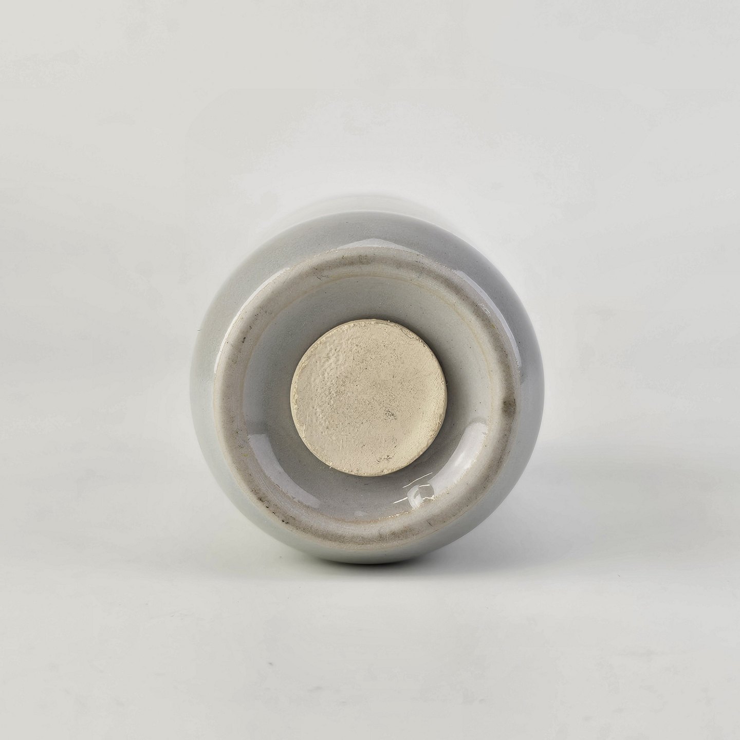Diskos er af ovnfast stentøj. Stellet er gråt og håndmalet med brune og grønlige detaljer