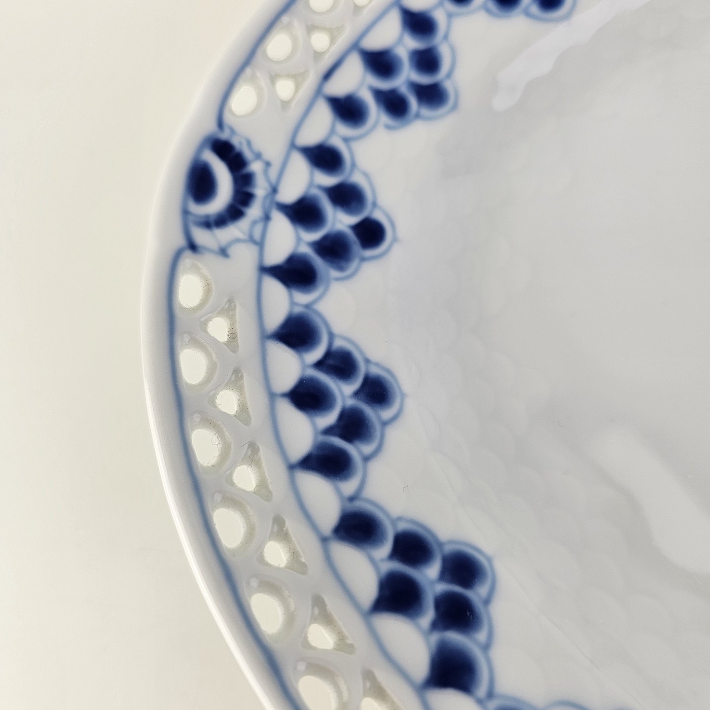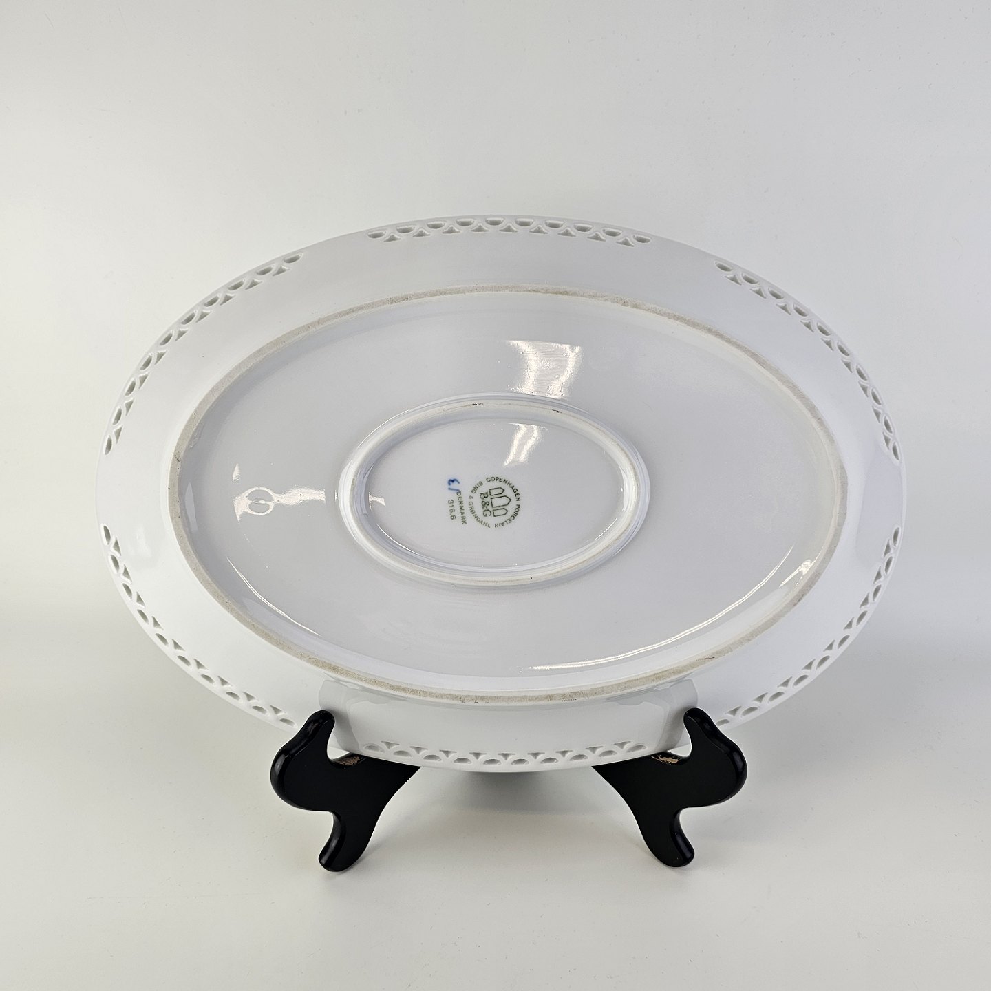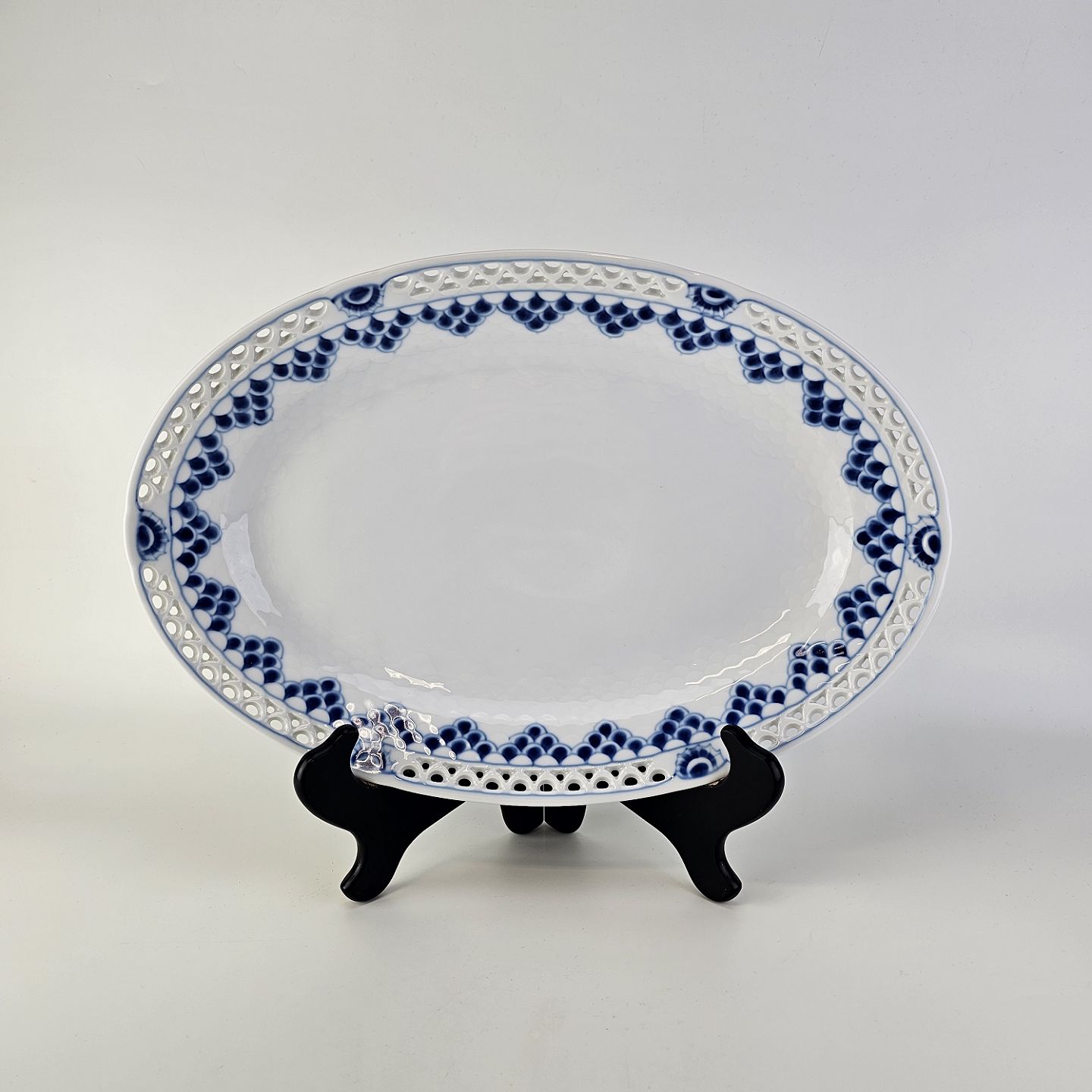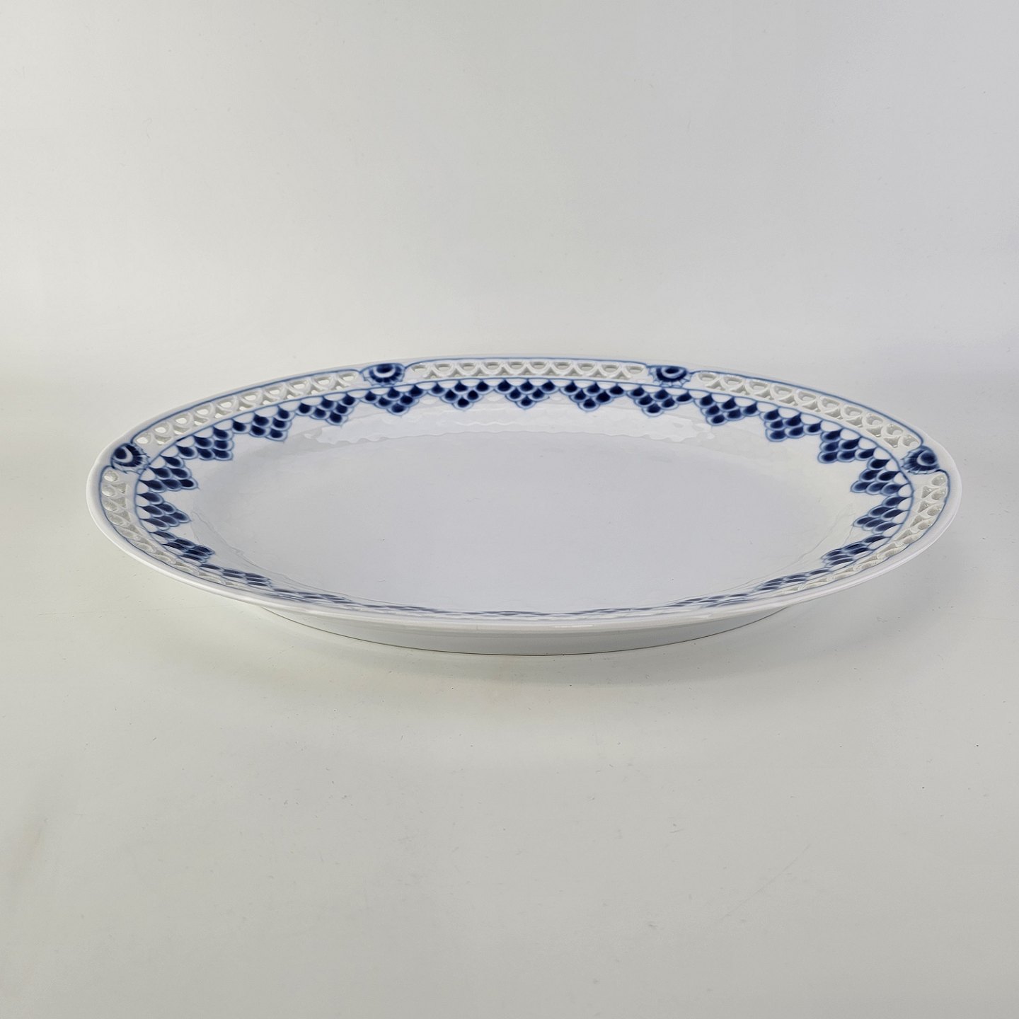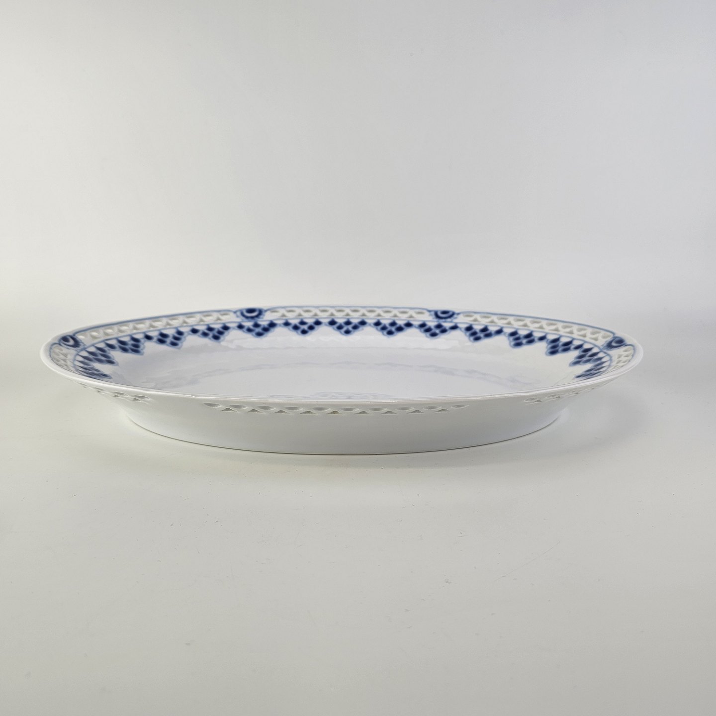 Ovalt fad i porcelæn med gennembrudt kant fra stellet Kronberg
