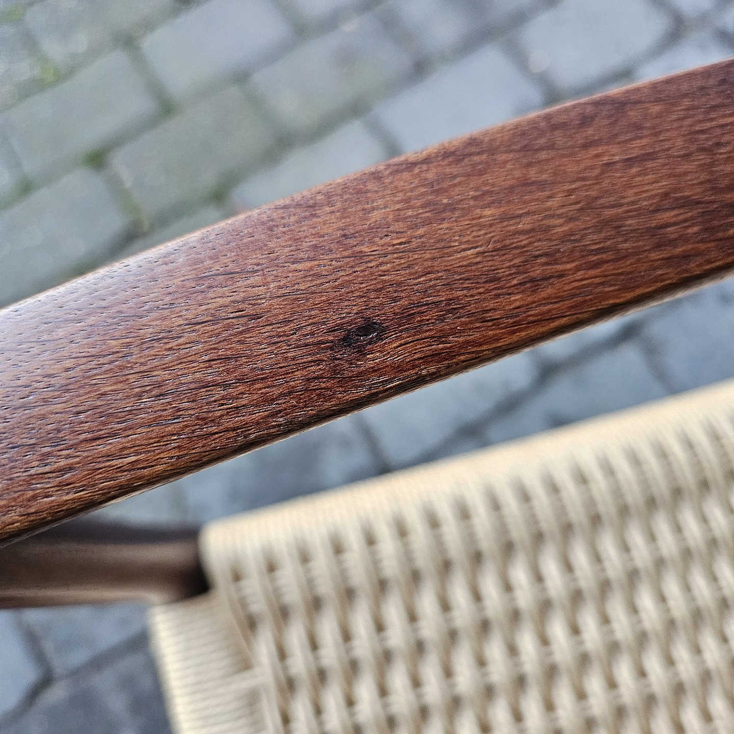 Fremstår med brugsspor i form af diverse små skrammer og ridser samt en farveforskel på armlænene