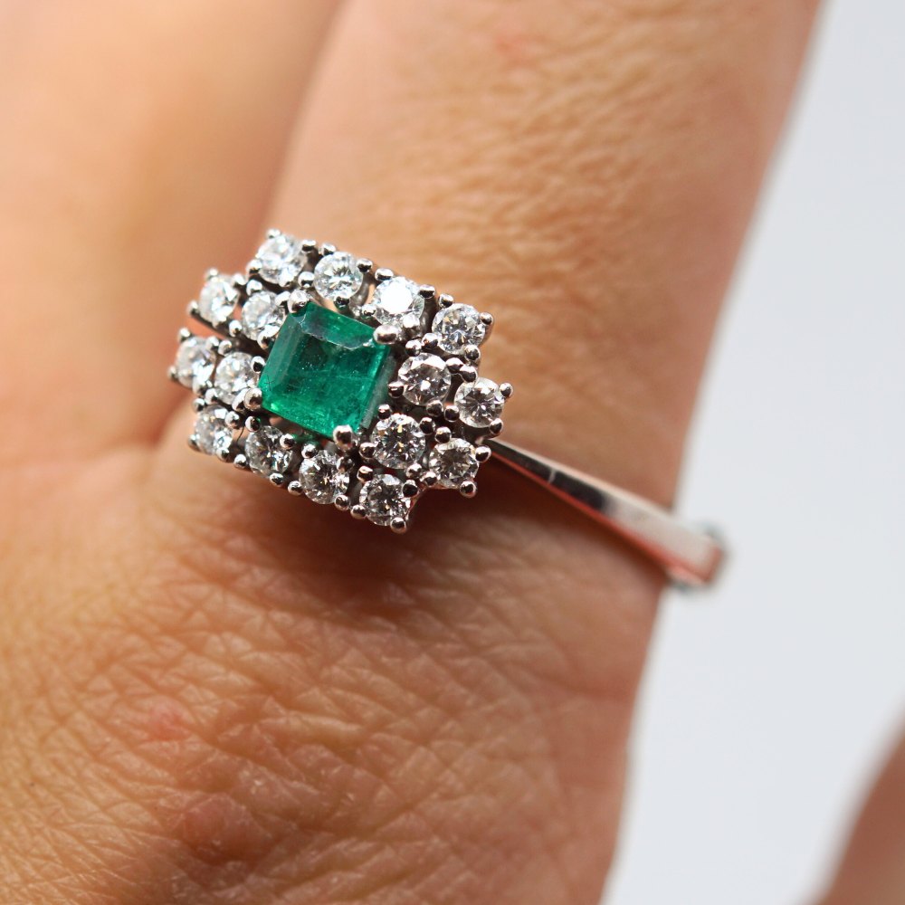 C. Antonsen; Ring in 14k white gold set with diamonds and emerald