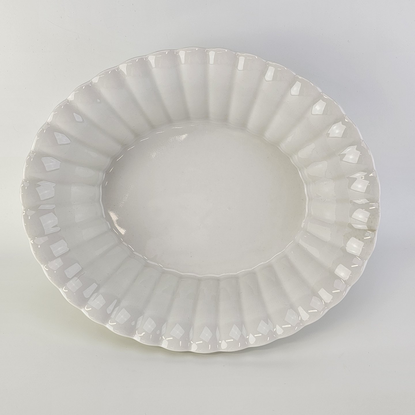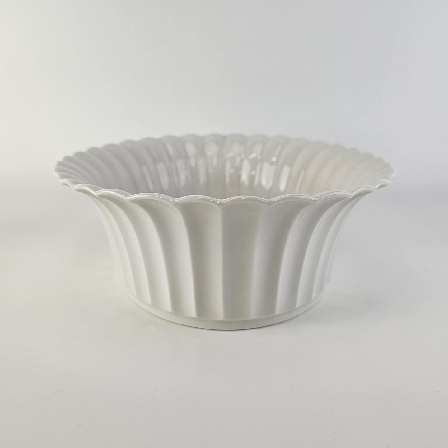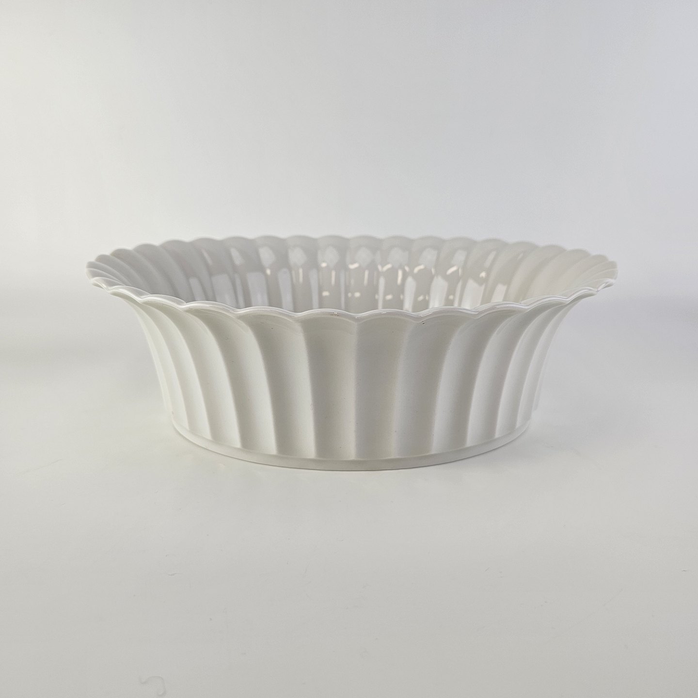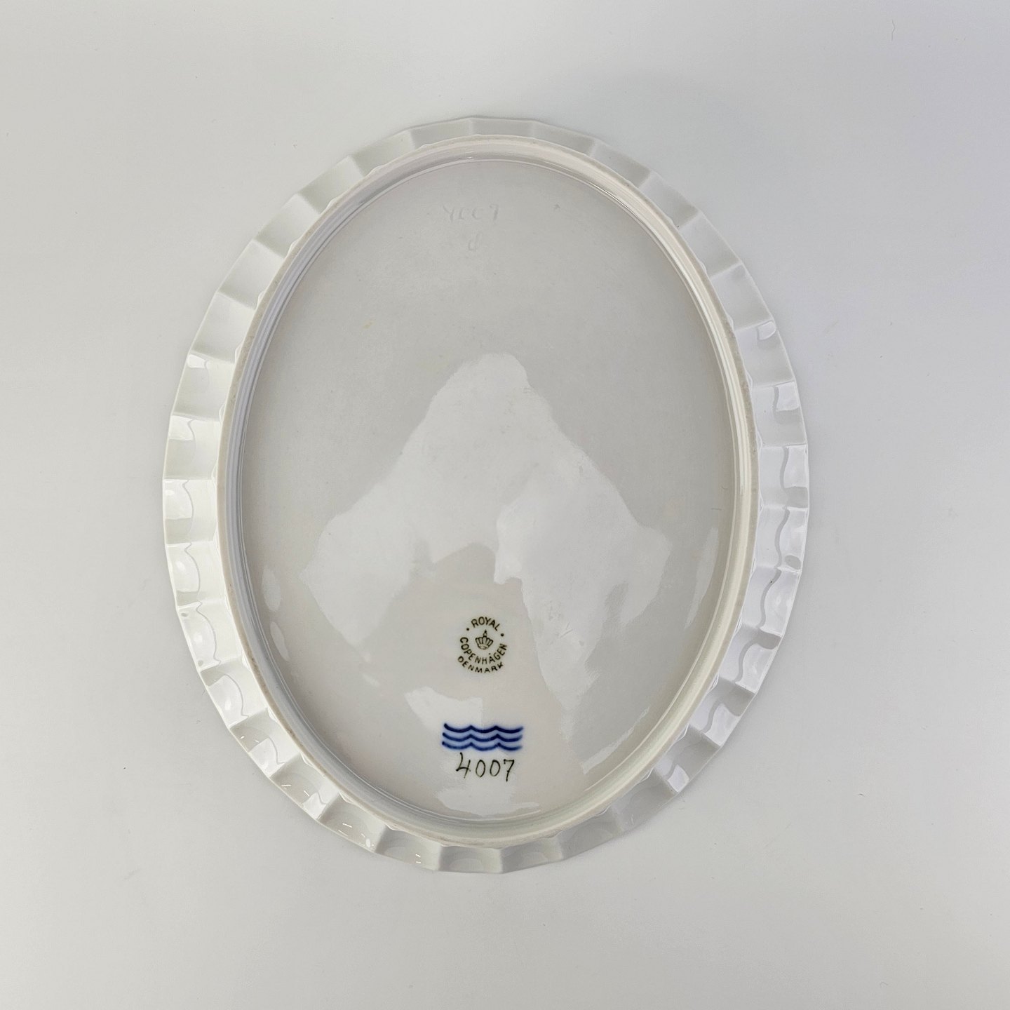 Oval skål med bølget sider til kant i kongeligt hvidt porcelæn