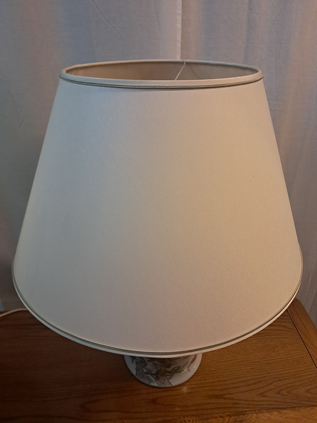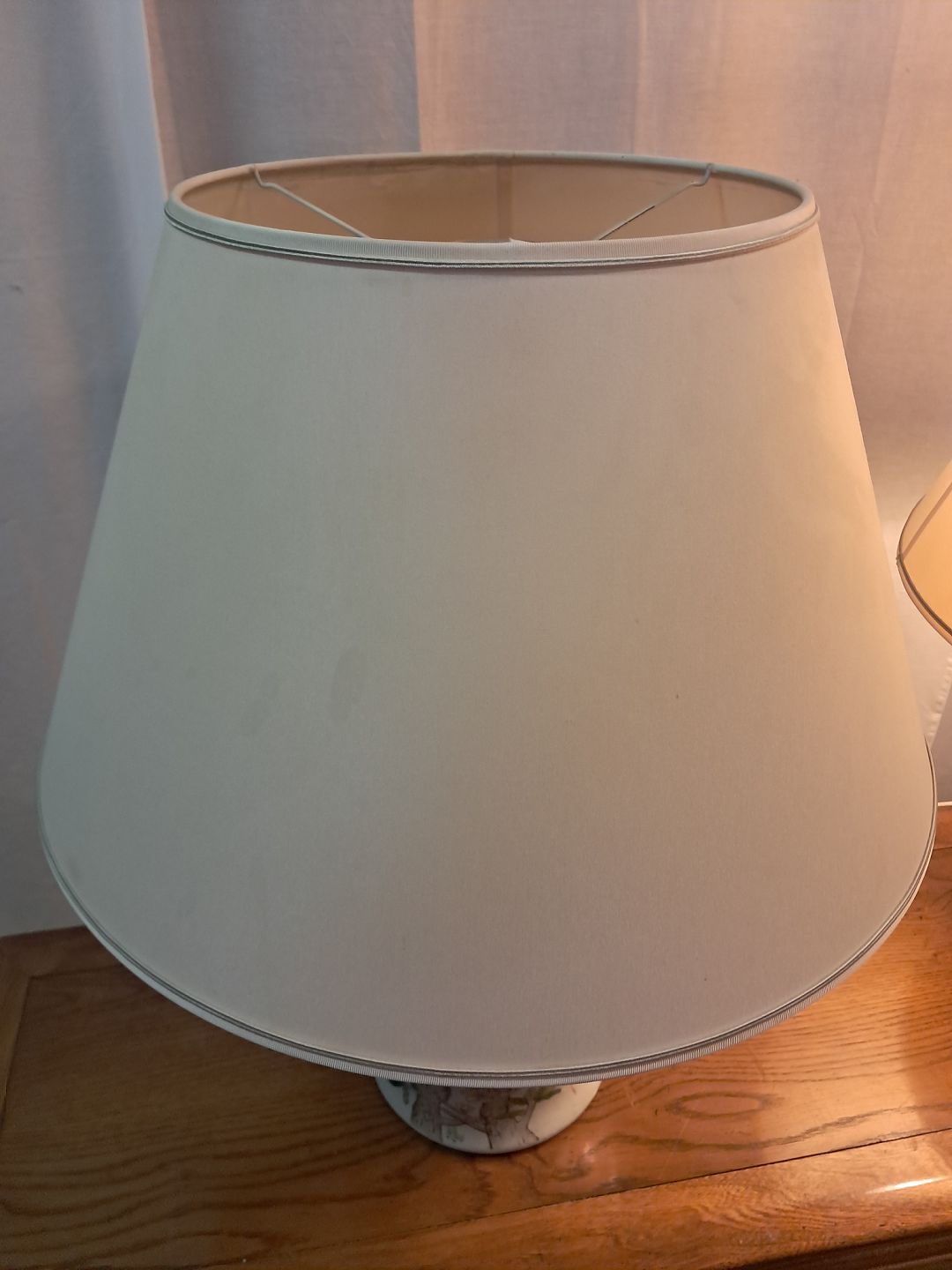 2 Asiatiske bordlamper i pocelæn med skærme, fra 1990erne.