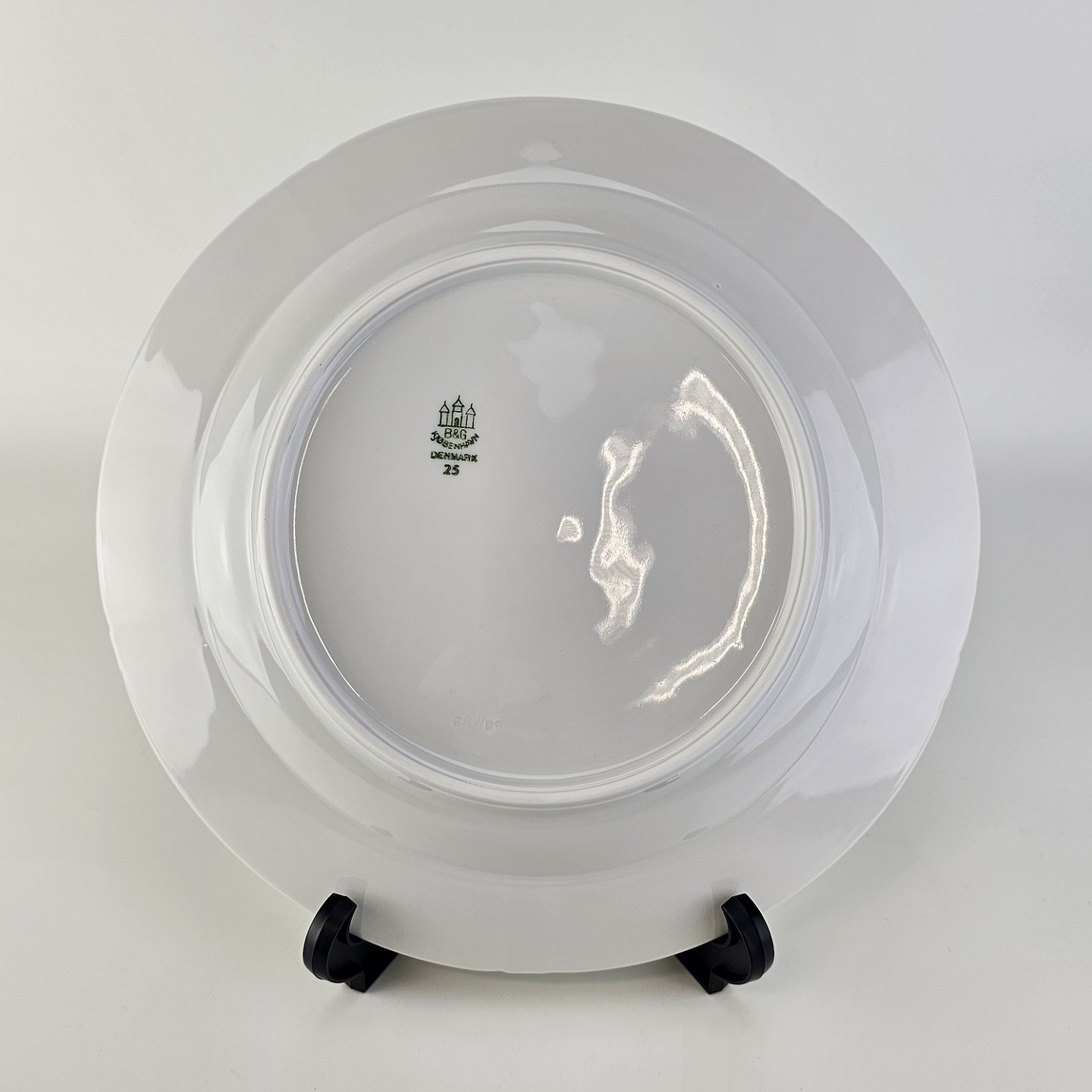Flad middagstallerken i hvidt porcelæn fra stellet Rosenborg