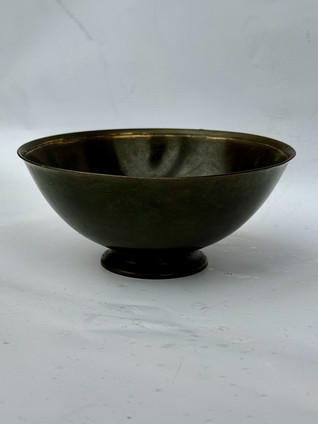 Just Andersen Let Bronze (LB). bronzepatineret skål på fod. Fremstillet på fabrikken omkring 1940. I god stand med få brugsspor. Fabriksmærket på bunden med det velkendte logo samt modelnummer LB 1337. Mål: H. 6 cm