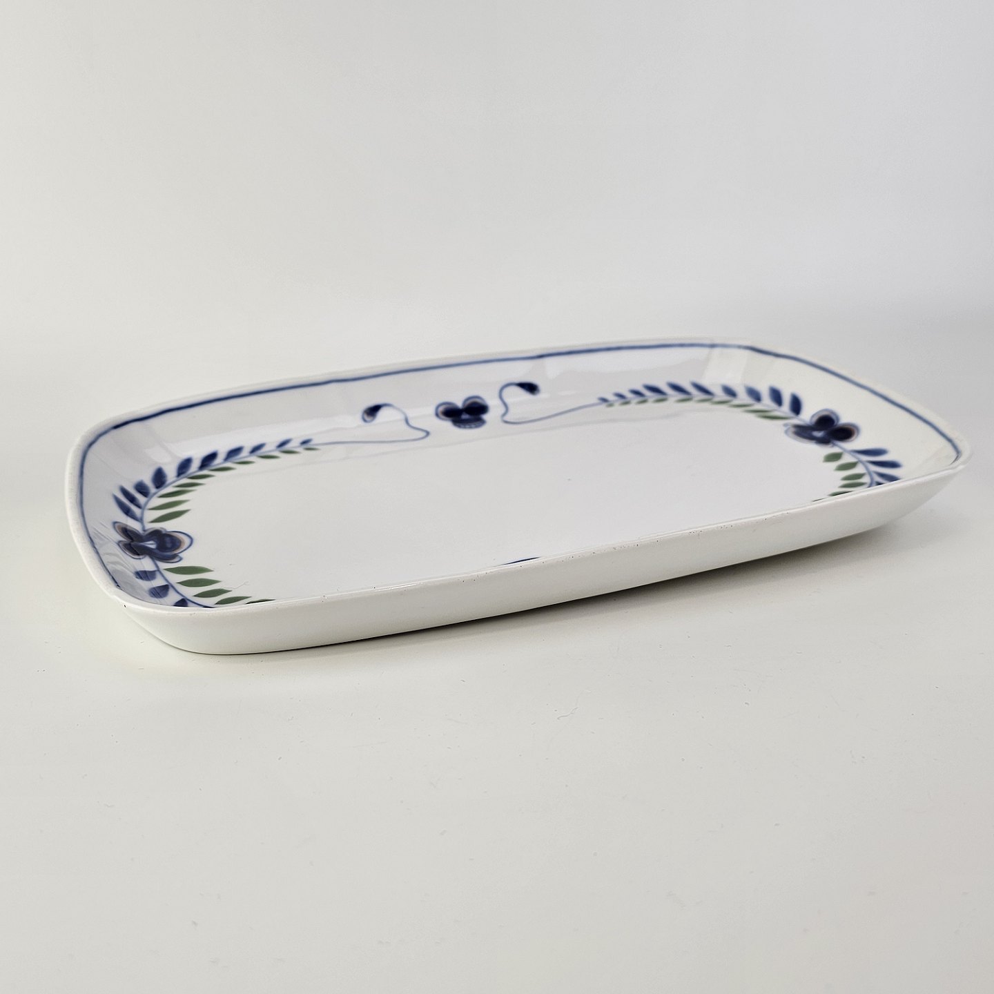 Rektangulært fad i porcelæn fra stellet Blå Vikke