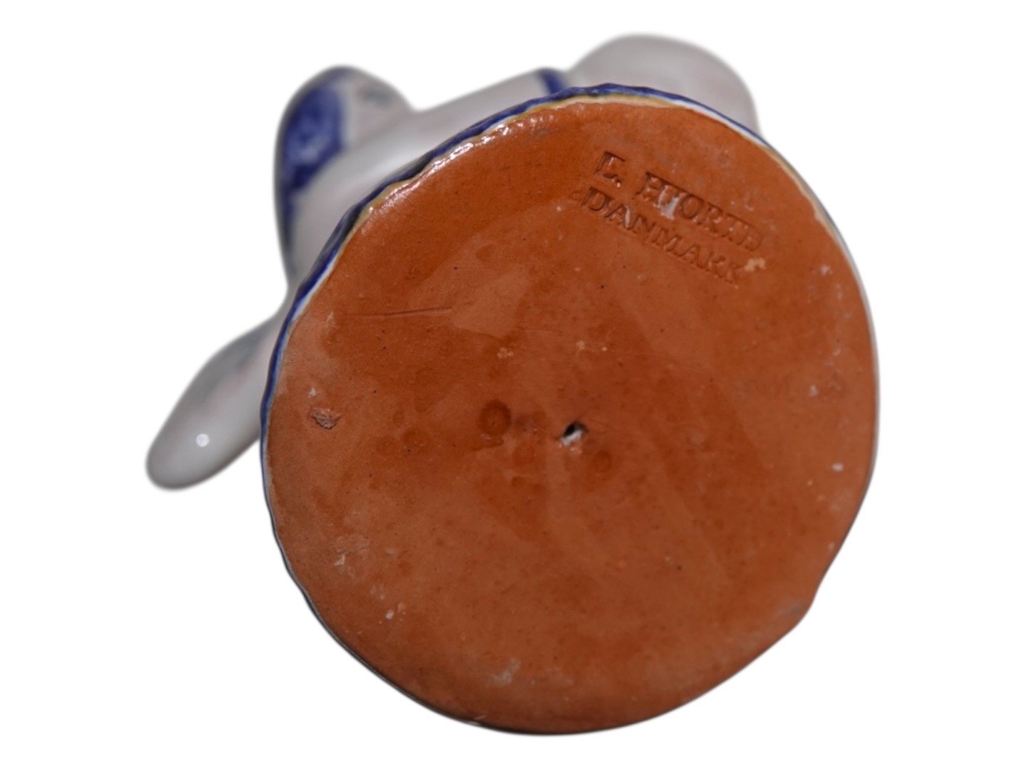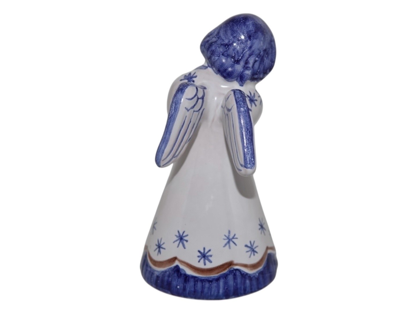 Hjorth Keramik, engel figur / lysestage med hvid og blå dekoration.