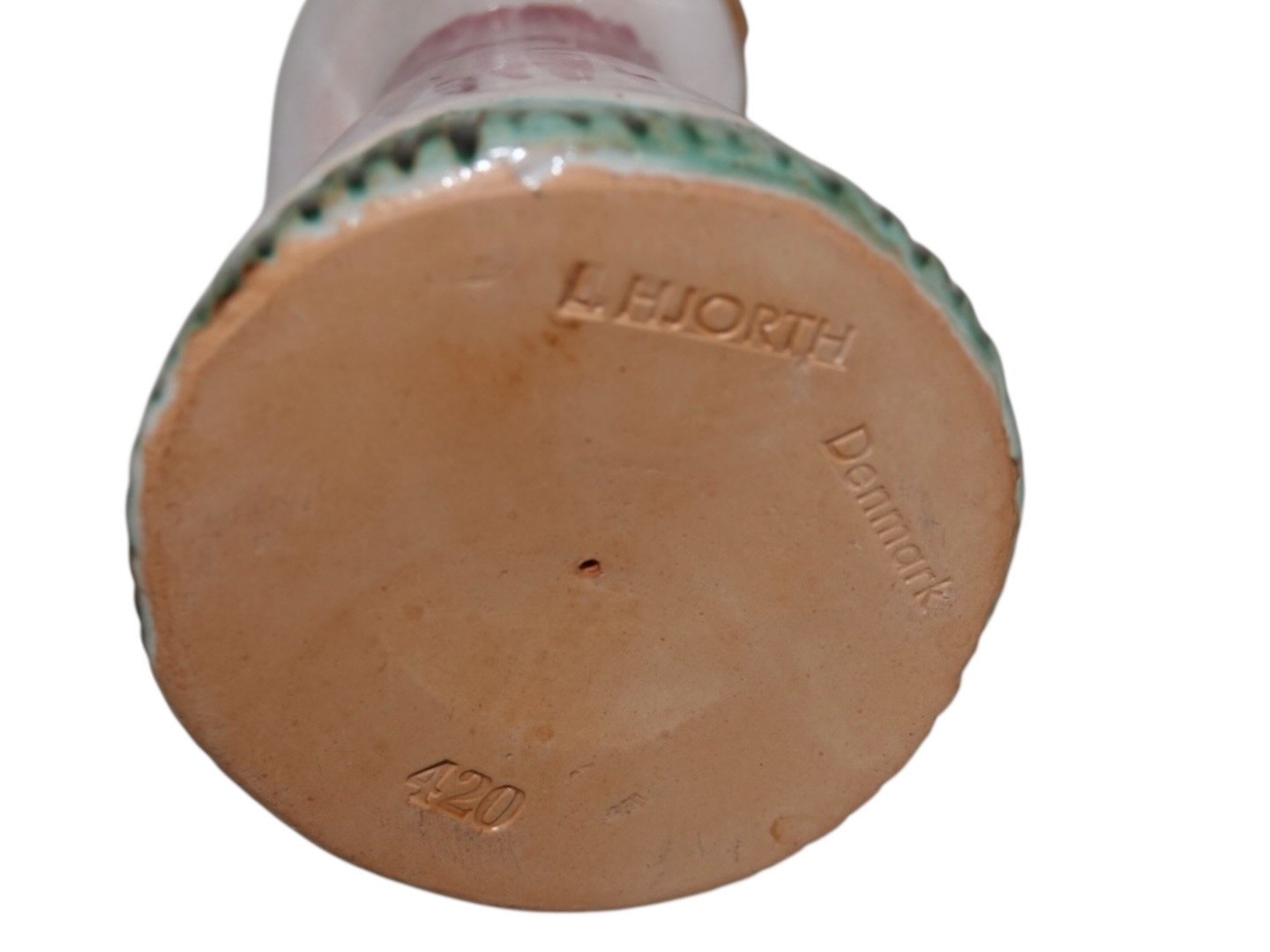 Hjorth Keramik, engel figur / lysestage med rød, grøn og gul dekoration.