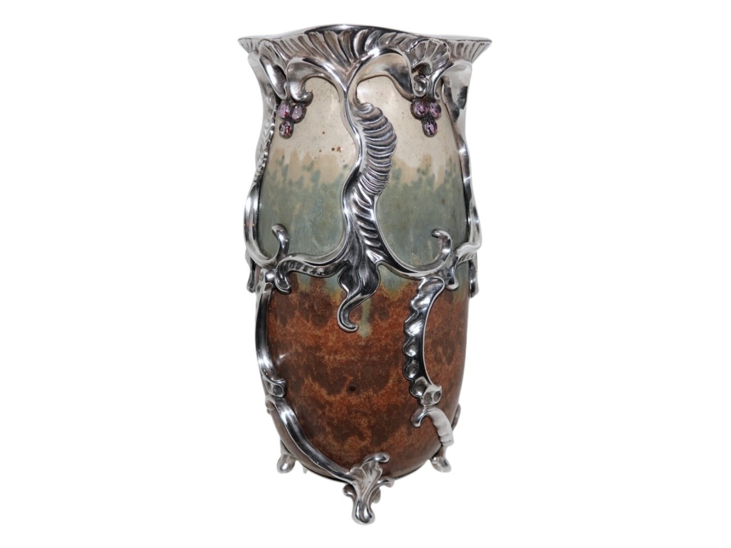 Stor Patrick Nordstrøm vase med ekstravagant sølvmontering
