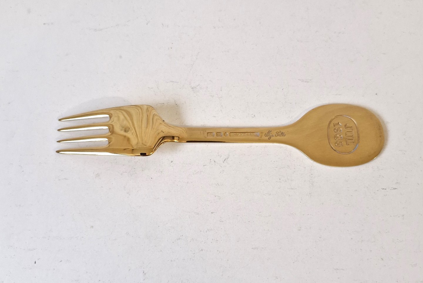 A.Michelsen julegaffel i forgyldt sterlingsølv og emalje fra 1985