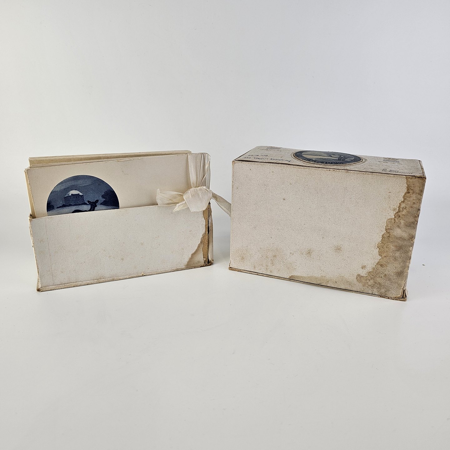 Brevkort med motiv af juleplatte fra 1923 fra Bing & Grøndahl og Royal Copenhagen. 10 kort og 10 kuverter