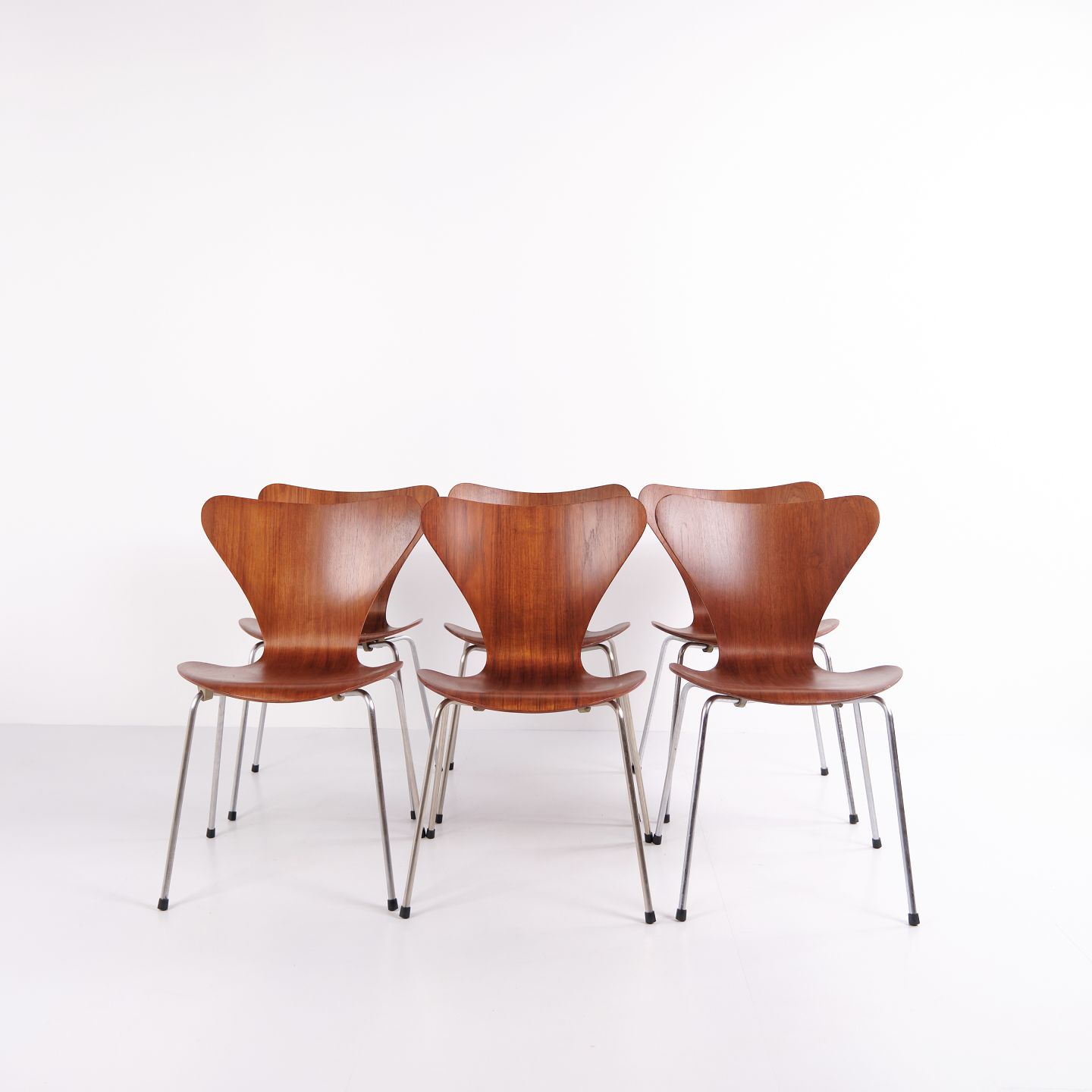 Sæt af 6 Syver stole – Model 3107 – Teak – Arne Jacobsen – Fritz Hansen