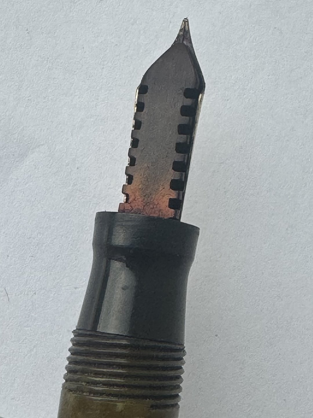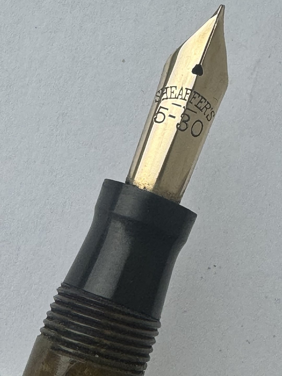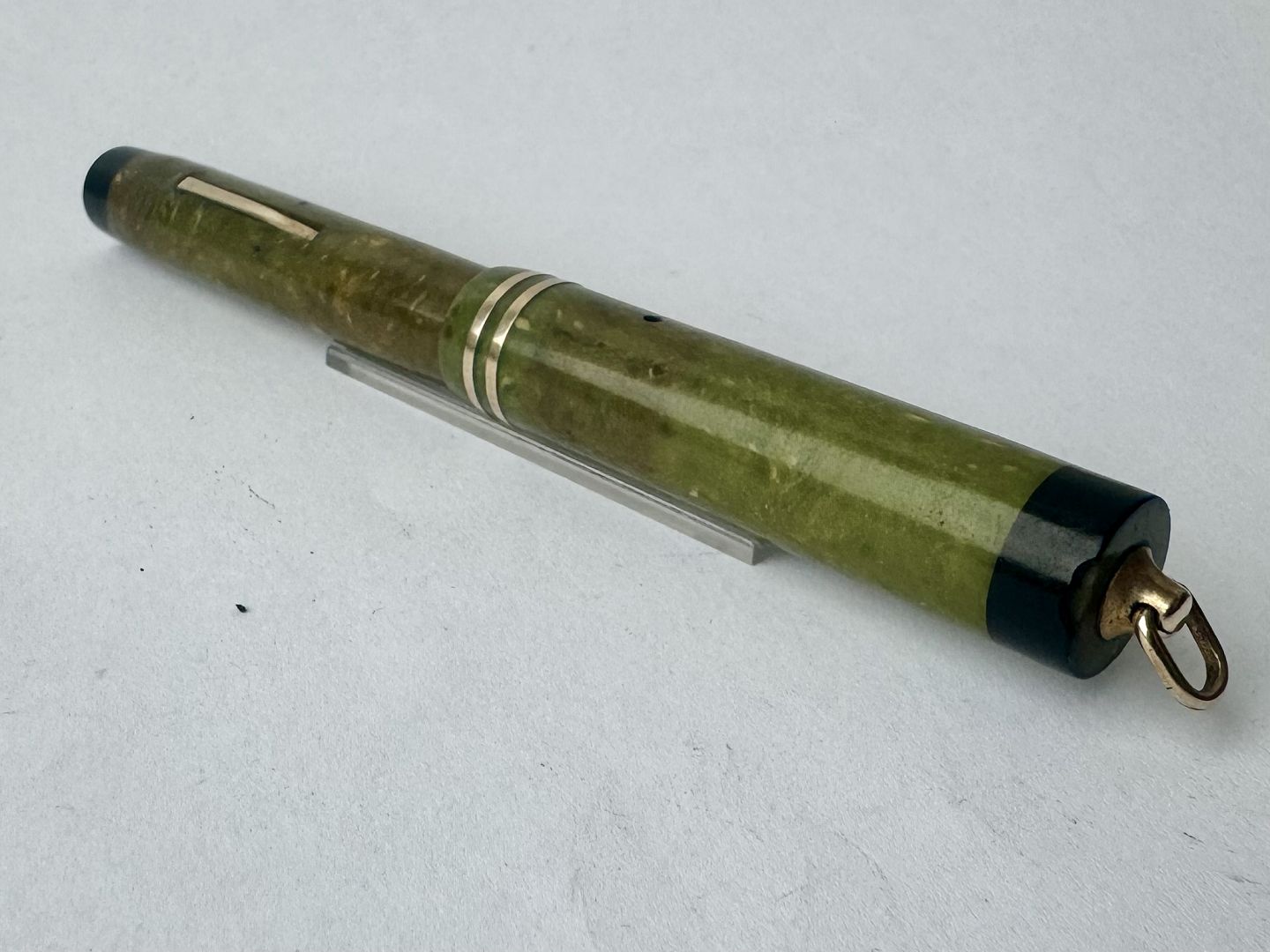 Kort Sheaffer’s fyldepen med lever filler. Monteret lille øsken øverst på hætten. Før end fyldepennen igen fungerer skal der indsættes en ny gummisæk, så blæk kan påfyldes. Fremstår ellers i fin stand med alle originale Sheaffer’s dele. Length: 11,8 cm