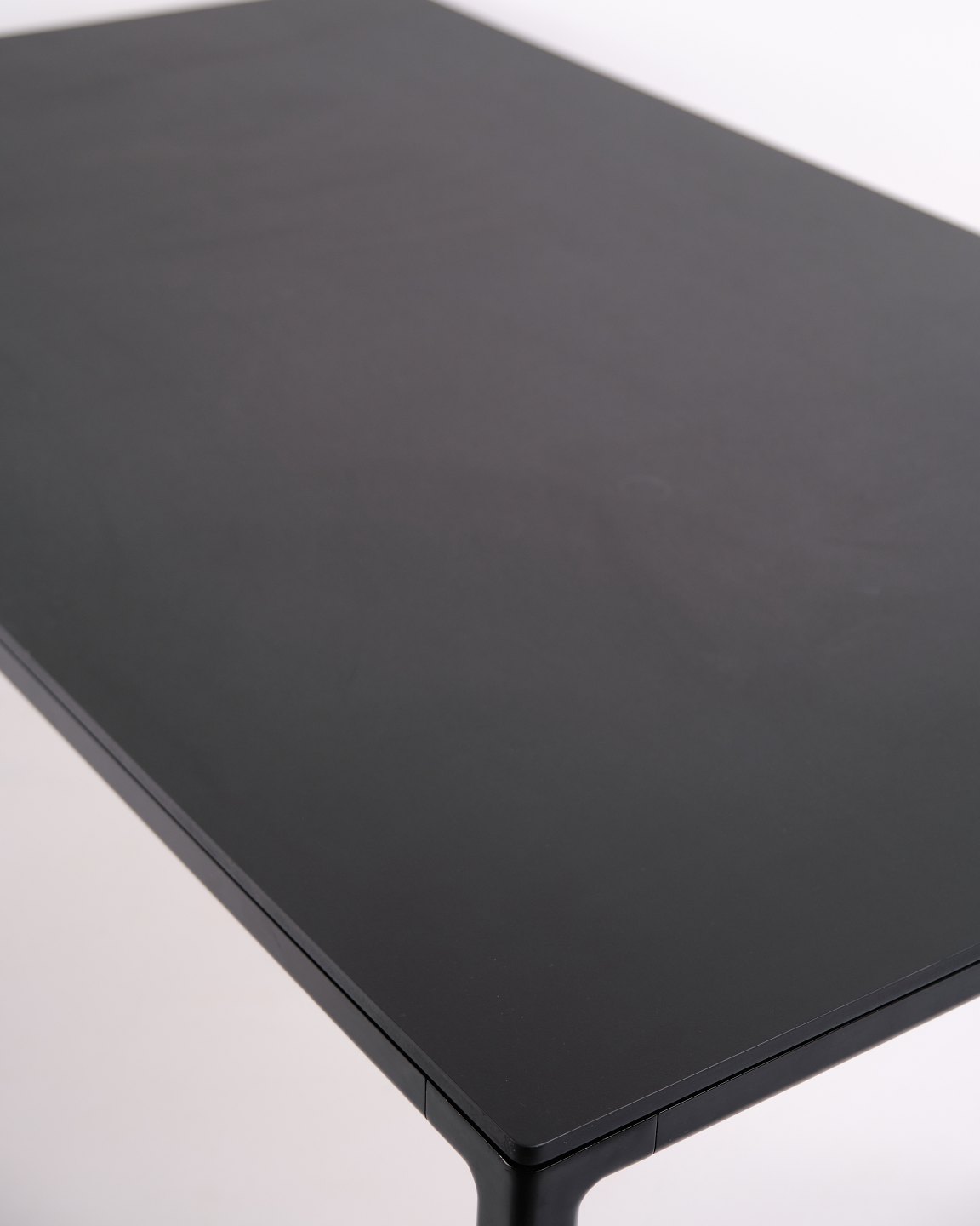HAY T12 spisebord med sort linoleumsbordplade og stel i sort pulverlakeret aluminium. Et stilrent og rummeligt bord med bløde hjørner og god plads til både spise- og arbejdsbrug.