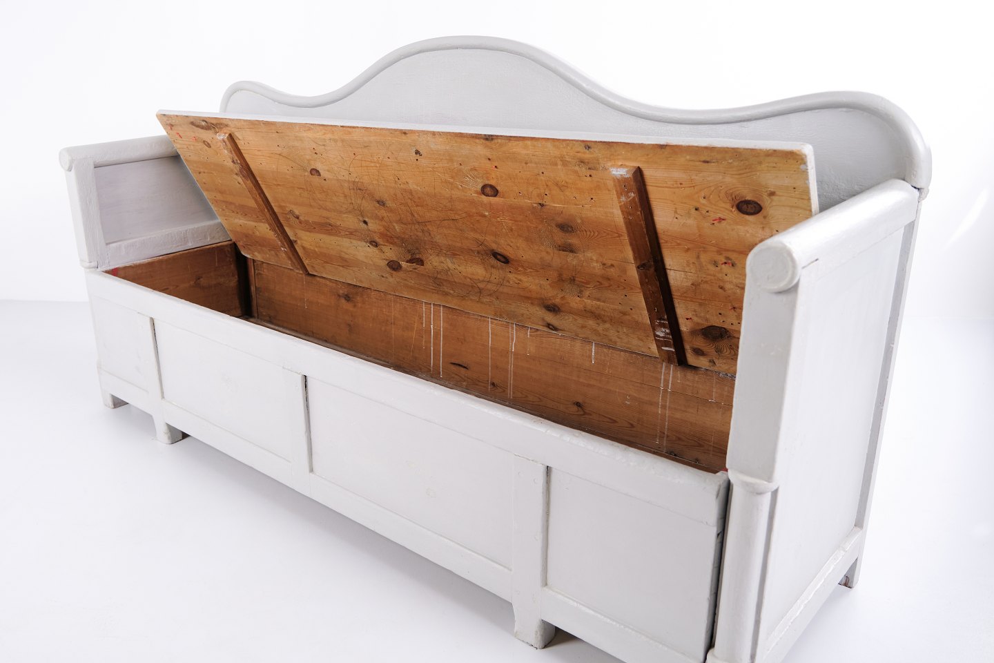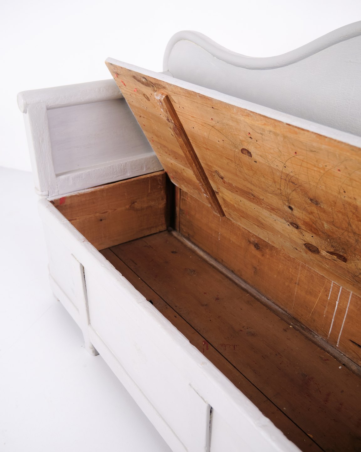 Antik Svensk Slagbænk - Grå bemalet - Opbevaring - 1900 tallet