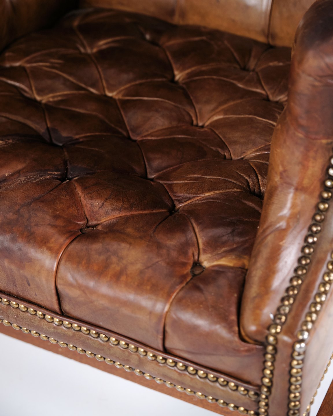 - Materiale: Brunt originalt læder, træstel
