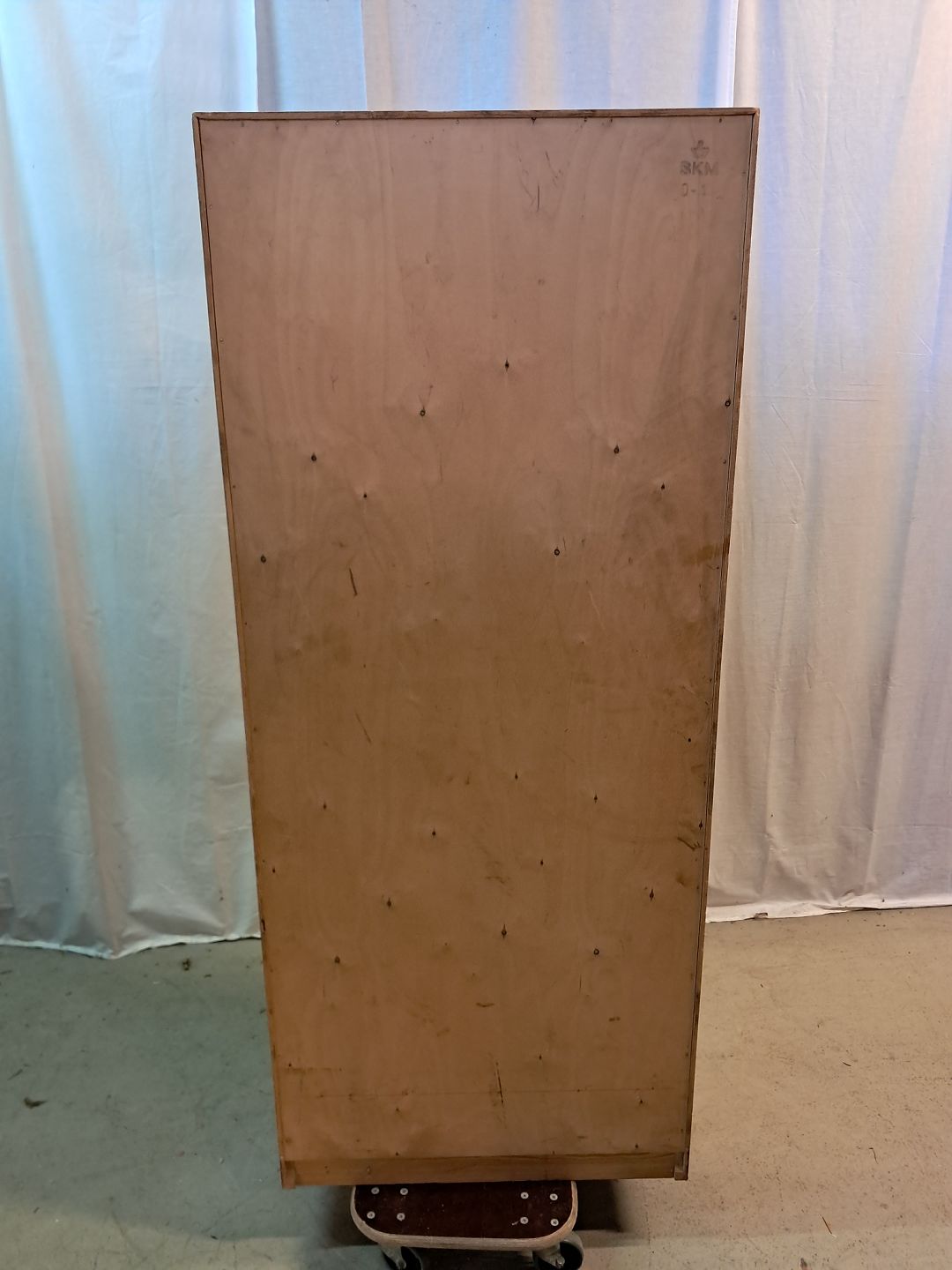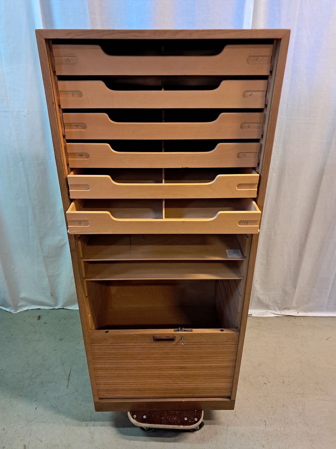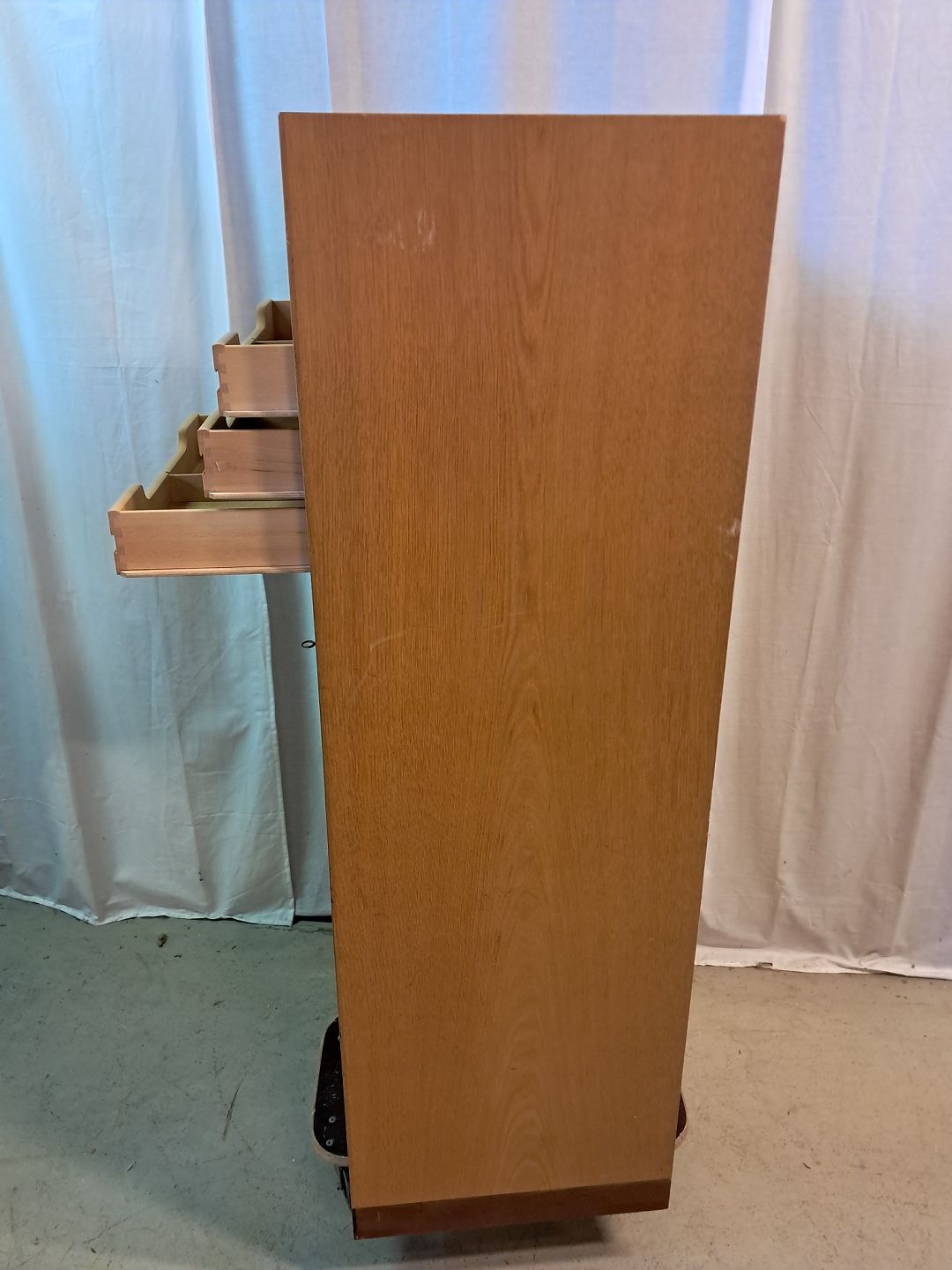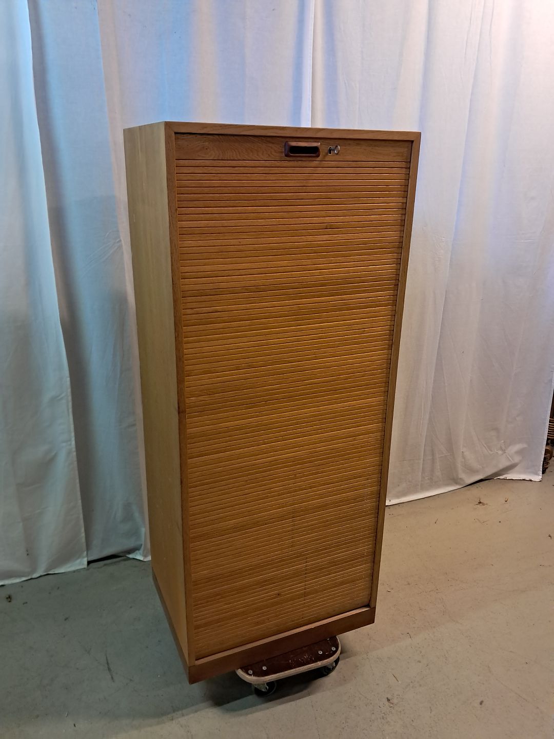 Jalousiskab i fineret egetræ, fra 1970erne.