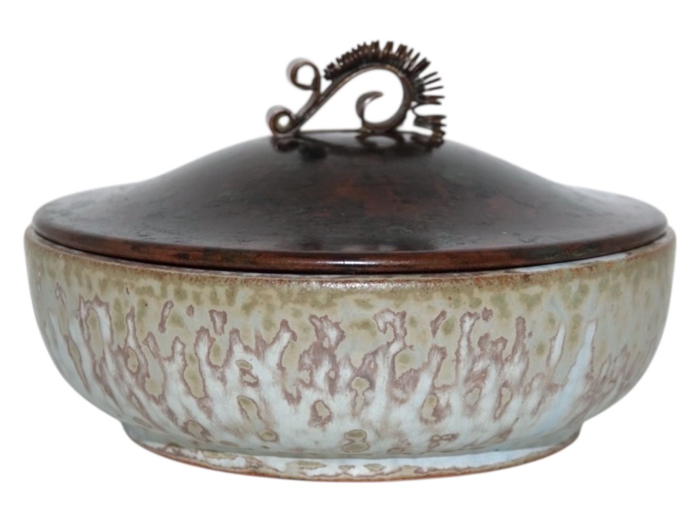 Arne Bang keramik, skål med en flot glasur samt originalt bronzelåg.