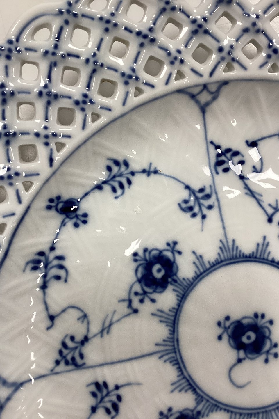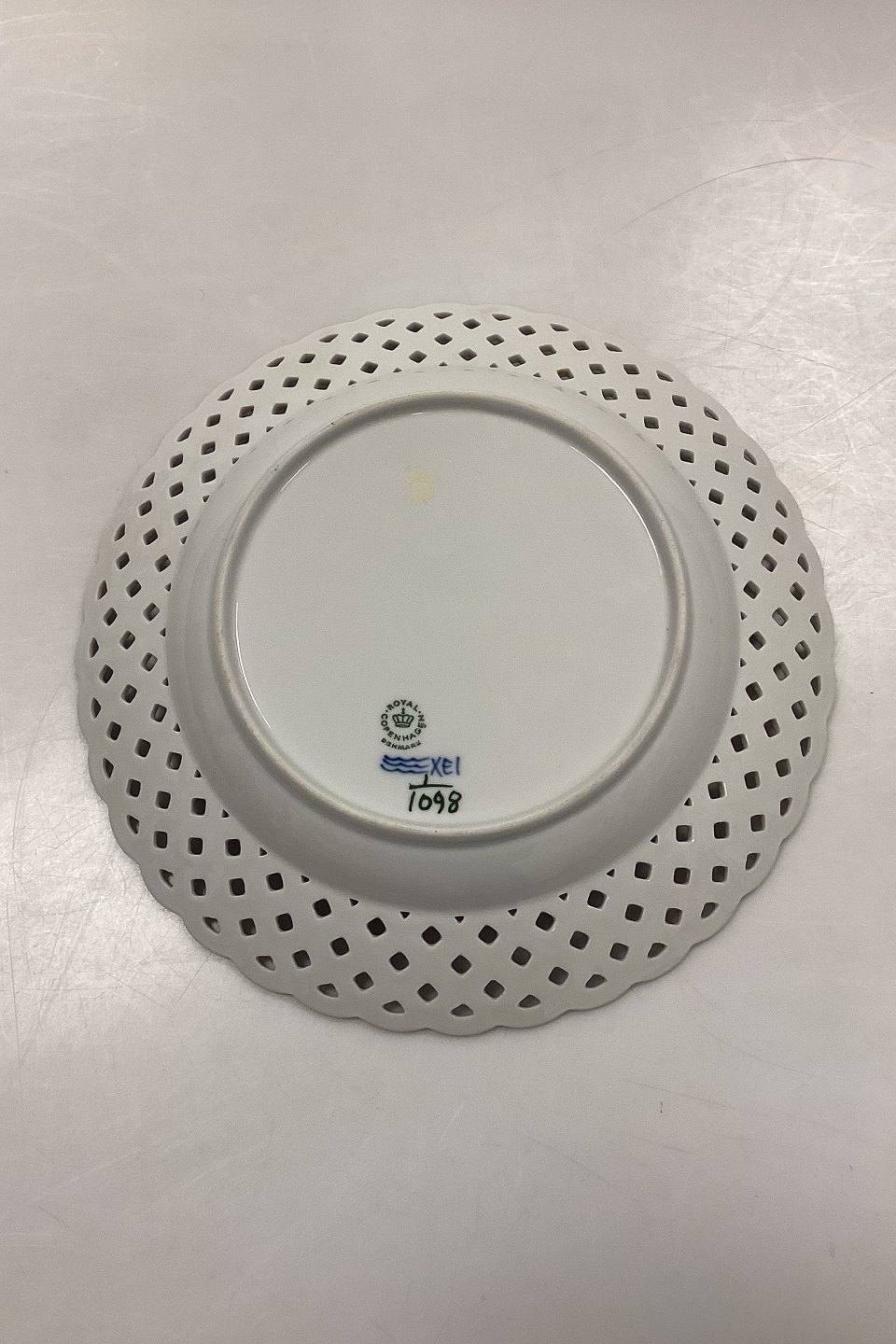 Royal Copenhagen Musselmalet Helblonde med gennembrudt kant Flad Tallerken No. 1/1098.