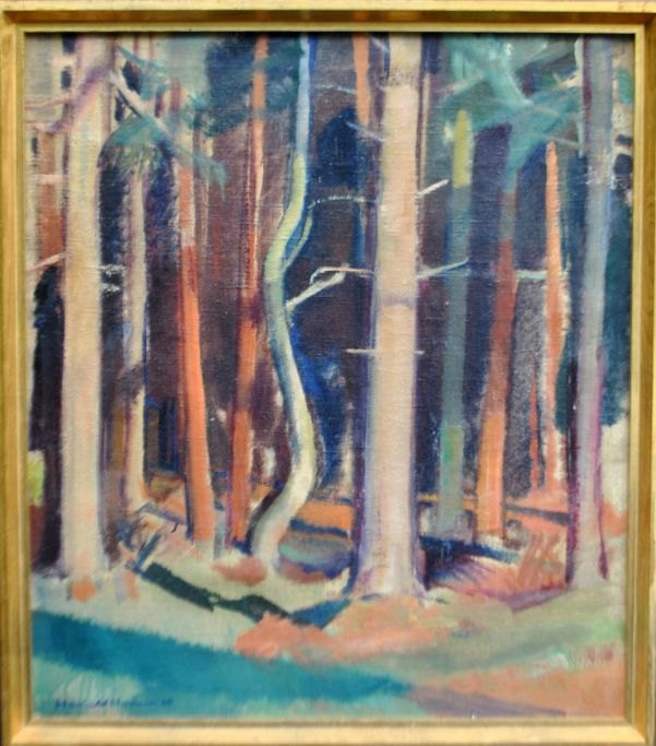 Hansen, Harald (1890 - 1967) Danmark: Skovbillede. Olie på lærred. Signeret 1935. 83 x 73 cm.
