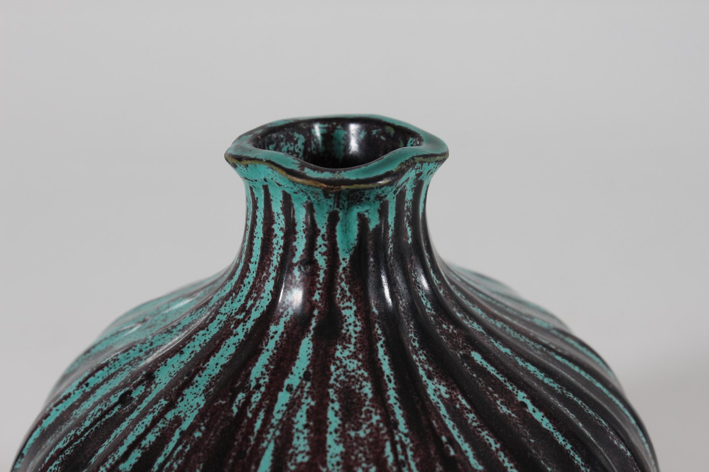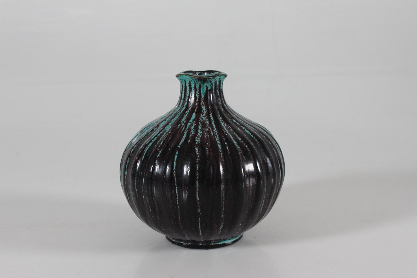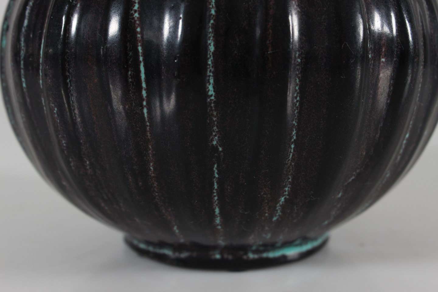 Rund Svend Hammershøi vase i rillet stil dekoreret med