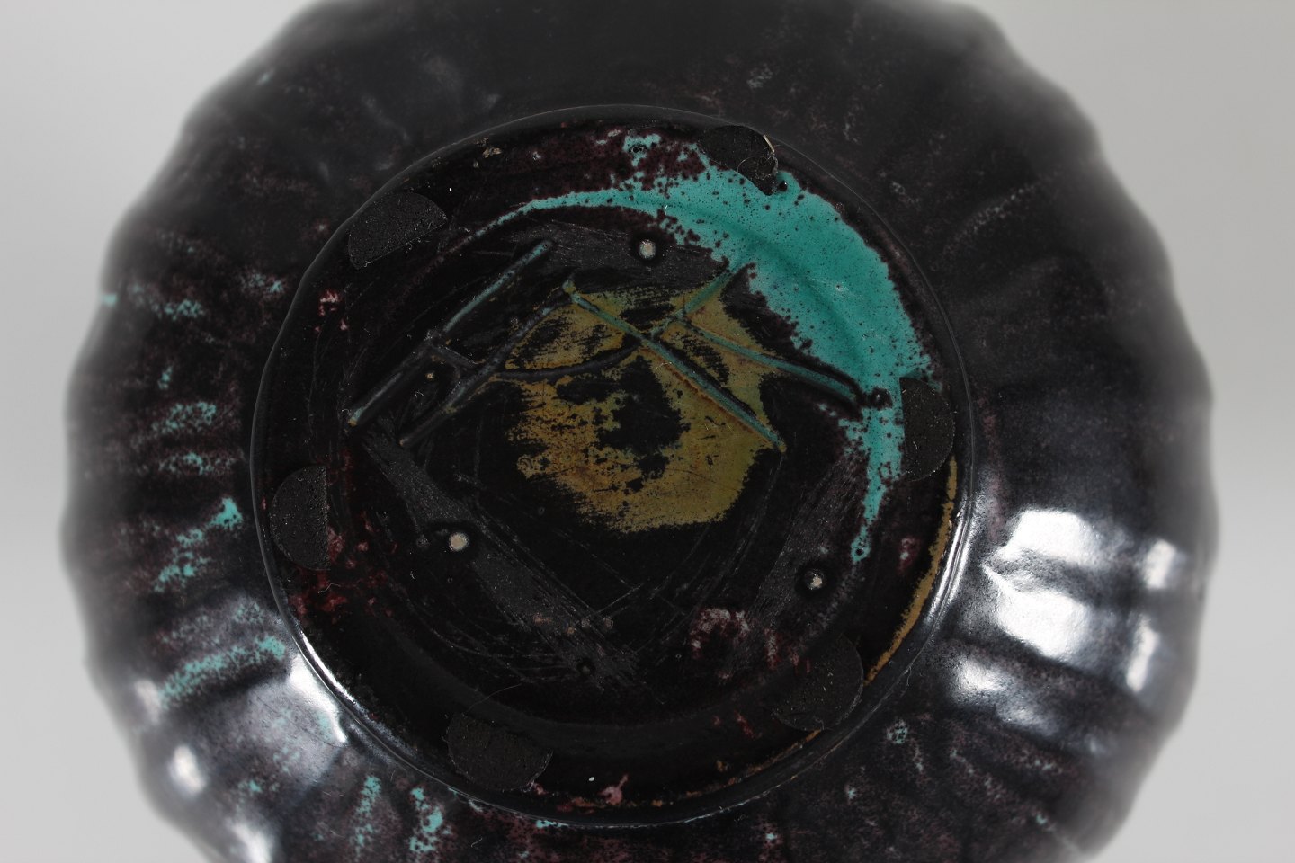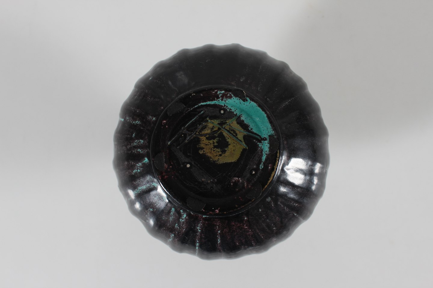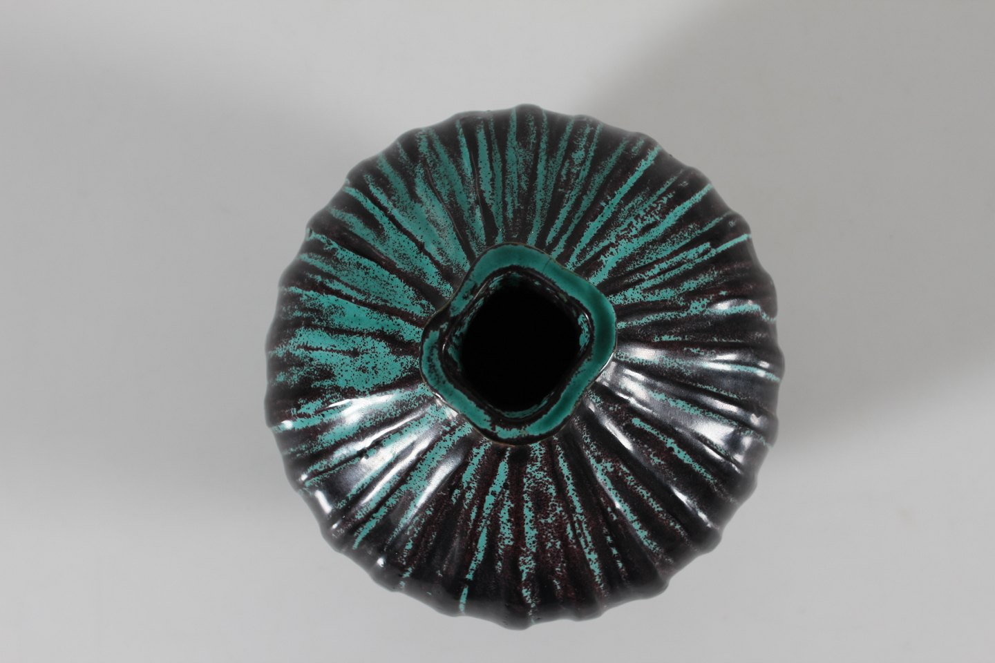Rund Svend Hammershøi vase i rillet stil dekoreret med
