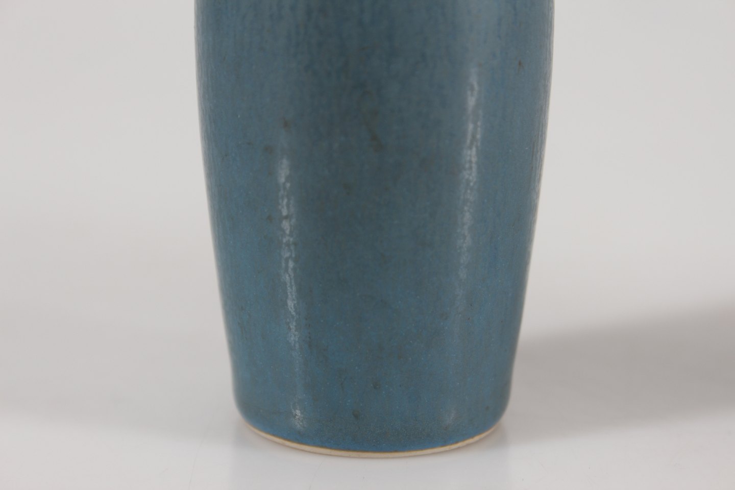Lille slank vase med petrol blålig harepels glasur