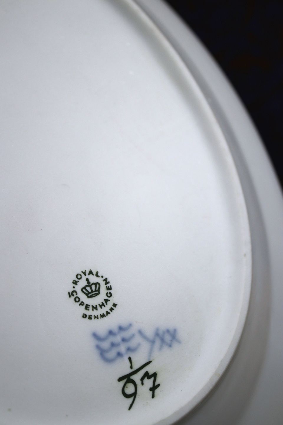 Musselmalet Riflet ovalt fad fra Royal Copenhagen