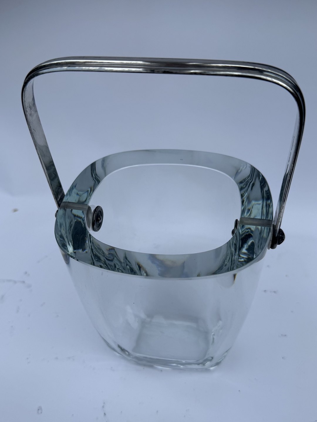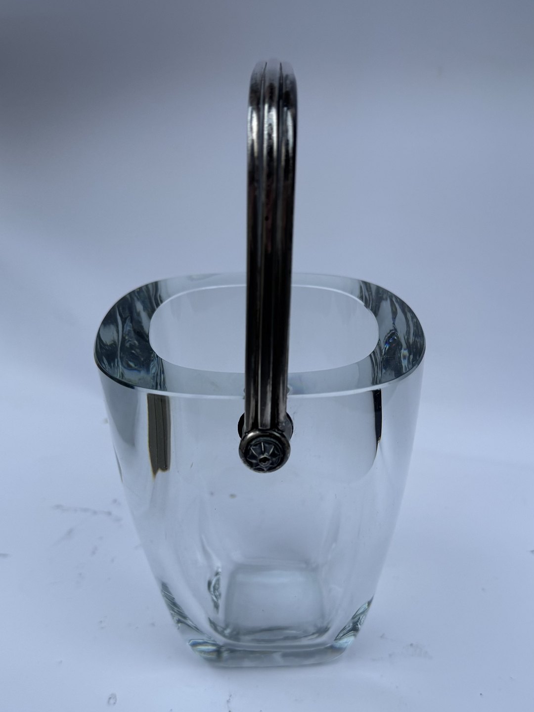 Isspand i glas fra svenske Strömbergshytten med greb i sterling sølv af E. Dragsted. I god stand.