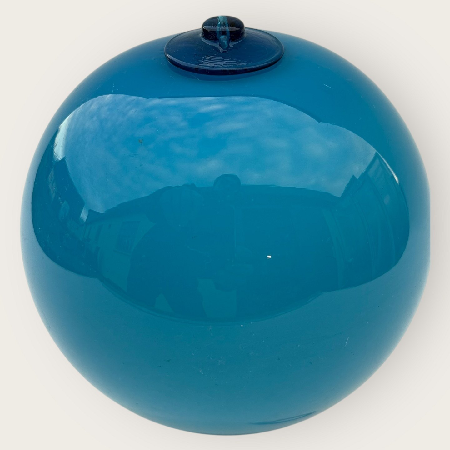 Holmegaard Turkis glas kugle til ophæng eller til brug sammen med Carnaby / Otto Bauer vaser, Holmegaard 1970'erne, Ca. 12 cm i diameter *fin stand*