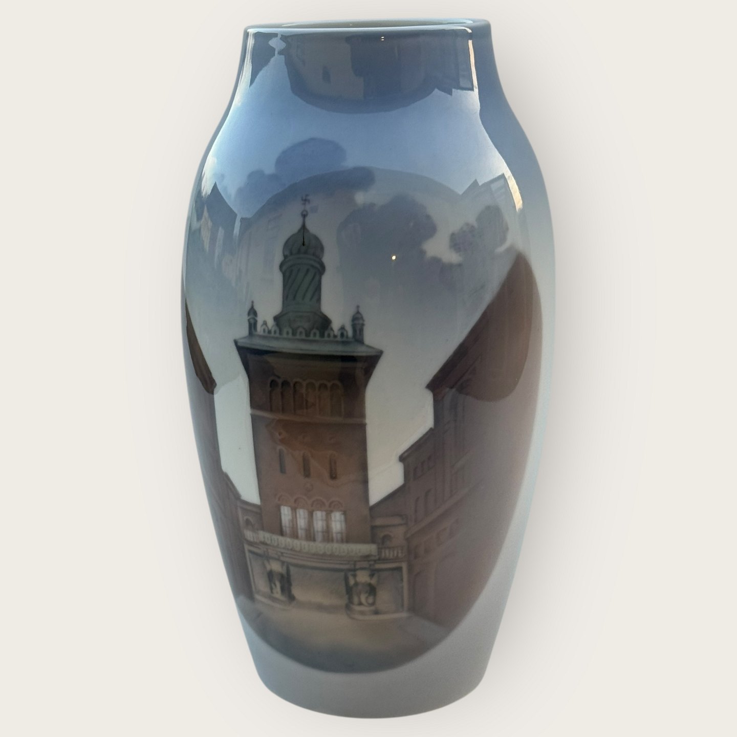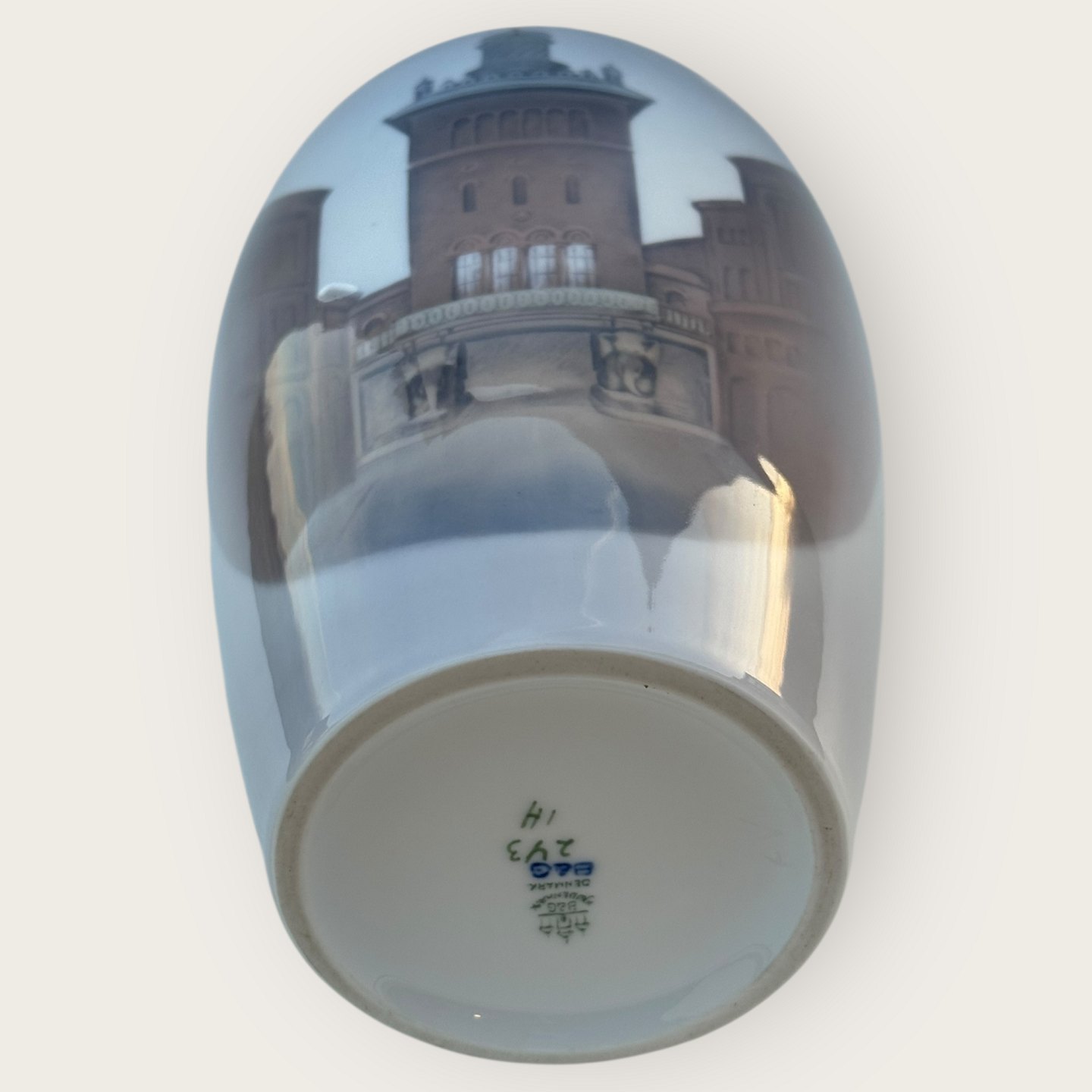 Bing & Grøndahl, vase med Carlsbergs elefantport, givet som jubilæumsgave til medarbejdere på Carlsberg #243, 24cm høj, 1.sortering *Pæn stand*