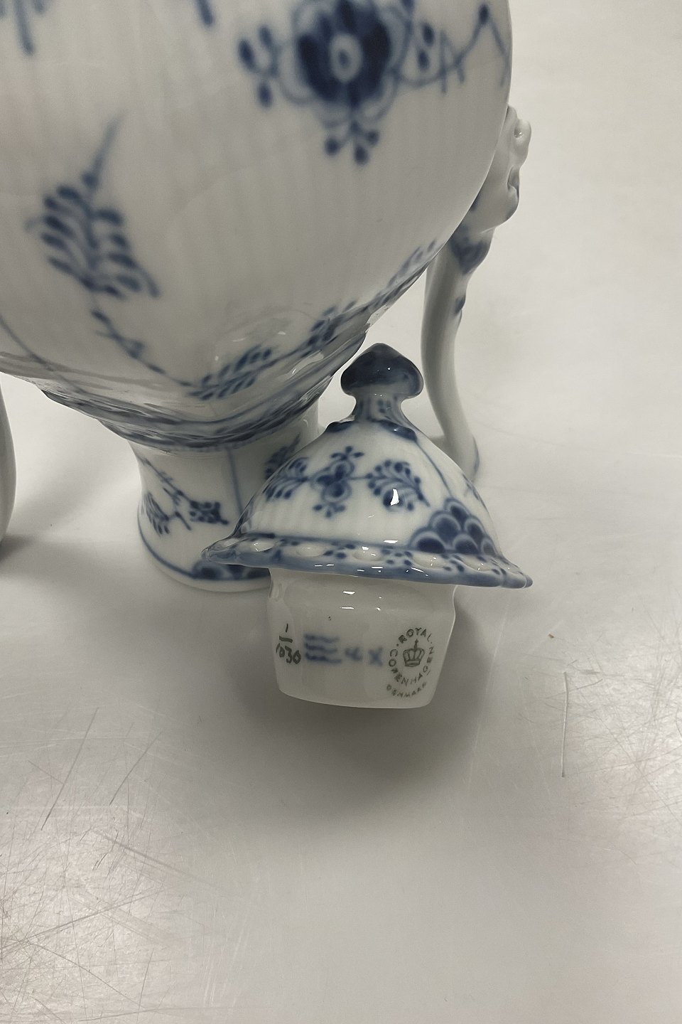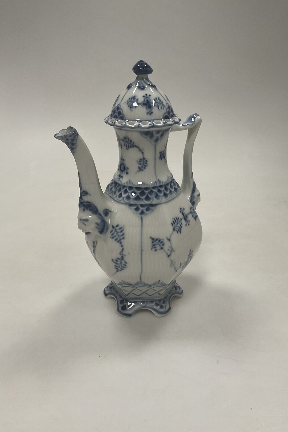 Royal Copenhagen Musselmalet Helblonde Lille sekskantet kaffekande No. 1030. 1. sortering. Måler 21 cm (8 17/64 in.)