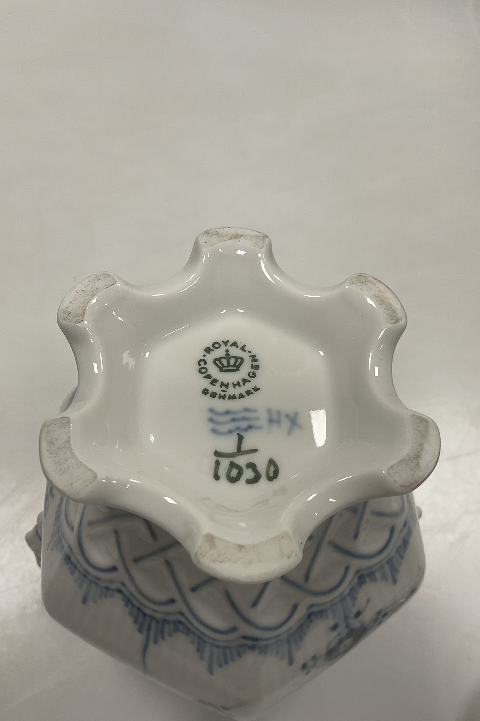 Royal Copenhagen Musselmalet Helblonde Lille sekskantet kaffekande No. 1030